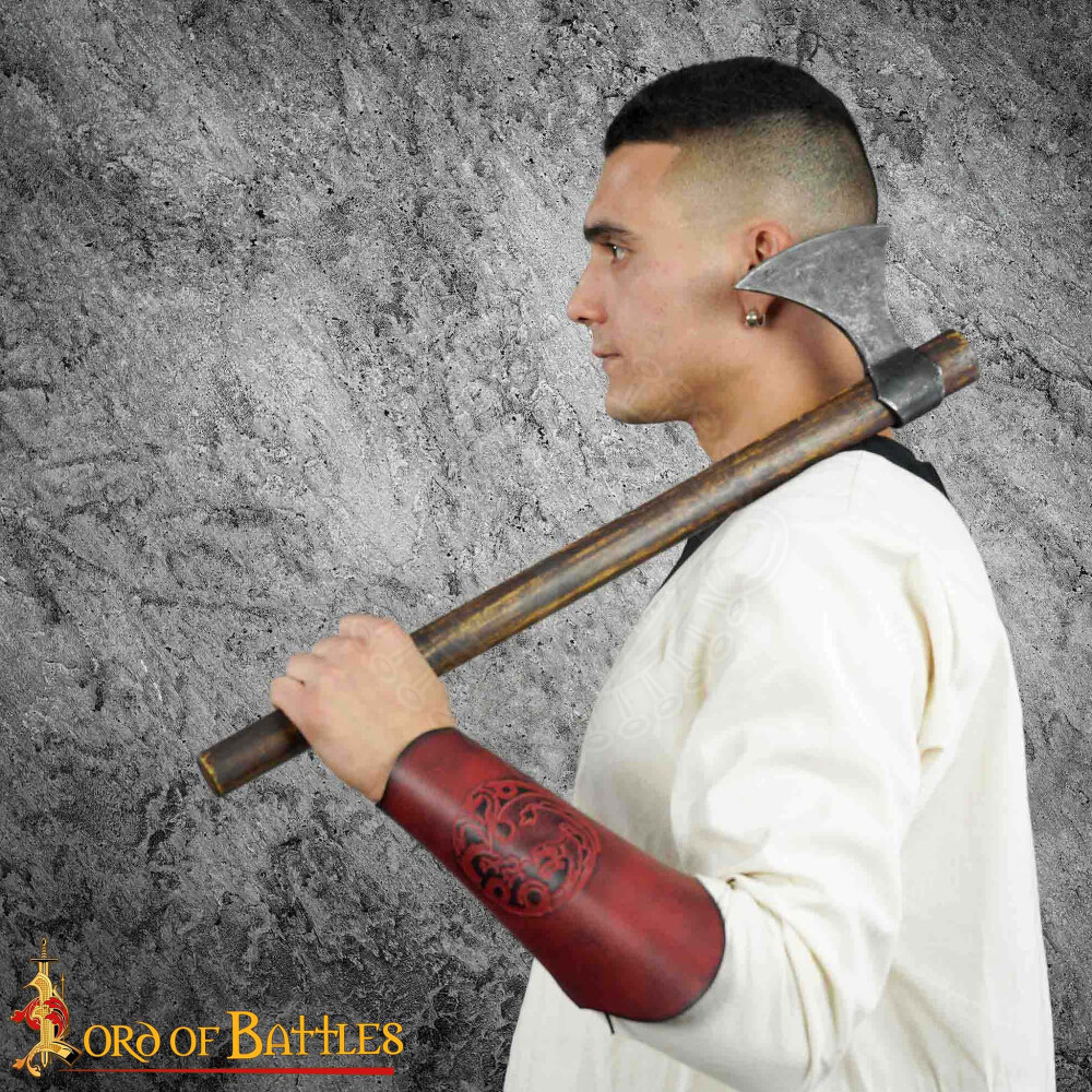 Der Schutz des Unterarms war für einen Krieger von entscheidender Bedeutung. Während wohlhabendere Krieger Metallplatten verwendeten, waren Armschienen aus gehärtetem Leder (sog. Kürissleder oder Cuir Bouilli) eine weit verbreitete, leichtere und erschwinglichere Alternative in vielen Kulturen, einschließlich der Wikinger. Sie dienten nicht nur als Schutz vor Hieb- und Stichverletzungen, sondern auch als Schutz des Handgelenks beim Bogenschießen. Oft waren sie zudem ein Zeichen des Ranges und trugen Symbole, die ihren Träger auch auf spiritueller Ebene schützen sollten.