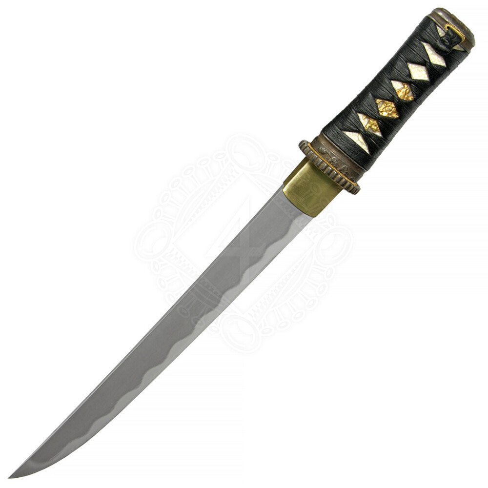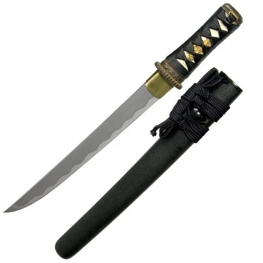 Die flache, schwarze Saya besitzt ein schwarzes Baumwoll-Sageo. Es wurde echte Rochenhaut (Same) auf der Tsuka verwendet. Die Tsuka-Ito besteht aus schwarzem Kunstleder und sorgt für eine höhere Griffqualität. Die Beschläge im Antik-Finish sind mit einem Hornstrauch-Motiv verziert. Die wunderschöne Eisen-Tsuba besitzt ein "Sonnenstrahlen"-Design. Aus dem Hause Hanwei. Weitere Produktinformationen ...