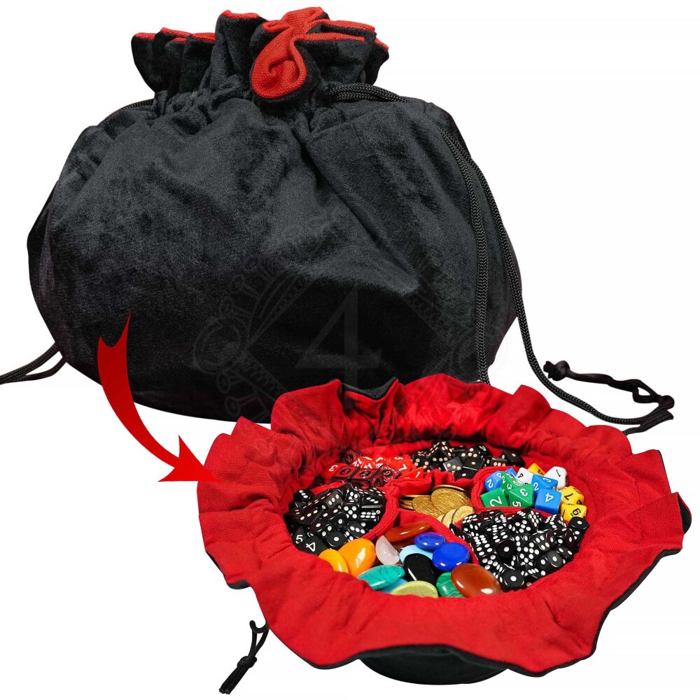 Dieser Samt-Würfelbeutel „Dungeon Master“ ist nicht nur ein gewöhnliches Säckchen für Würfel. Er ist dein unentbehrlicher Begleiter für jede Spielrunde, jede LARP-Schlacht oder Cosplay-Veranstaltung. Handgefertigt aus hochwertigem und sehr angenehm anzufassendem schwarzem Baumwollsamt, vermittelt er einen Hauch von Luxus. Im Inneren verbirgt sich ein durchdachtes System aus sieben separaten Fächern aus robuster roter Baumwolle, dank dem deine Würfel, Münzen und andere kleine Schätze immer perfekt organisiert und geschützt sind. Der feste Kordelzug sorgt dafür, dass du niemals etwas verlierst. Weitere Produktinformationen ...