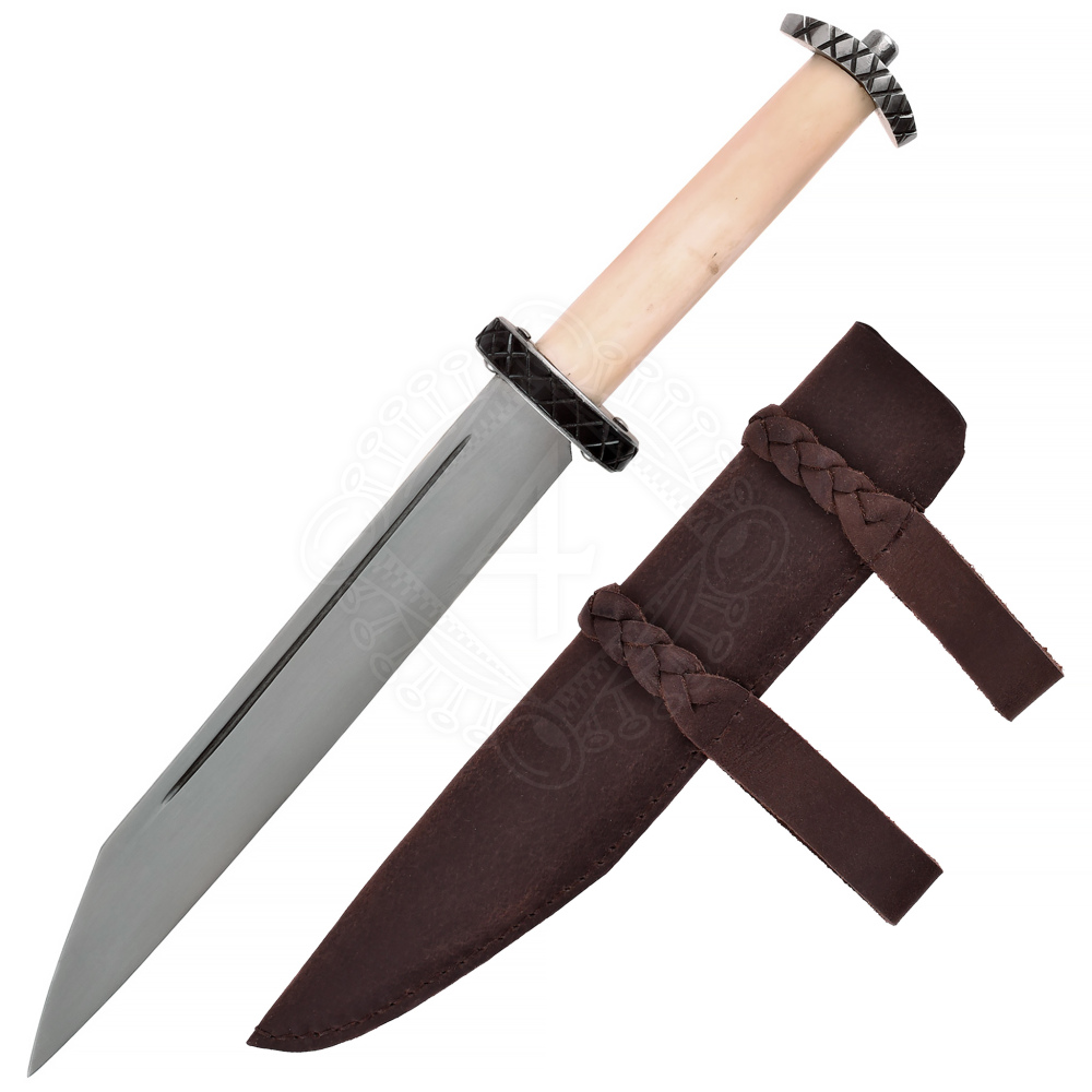 Schöne Rekonstruktion eines typischen, frühmittelalterlichen Kurzsaxmessers, wie sie bei verschiedenen germanischen Stämmen (nicht nur den Saxen) beliebt waren. Diese Saxe wurden nicht ausschließlich als Waffe benutzt, sondern taten ihren Dienst auch bzw. sogar überwiegend als Schneid-, Hau- und Schnitzmesser. Weitere Produktinformationen ...