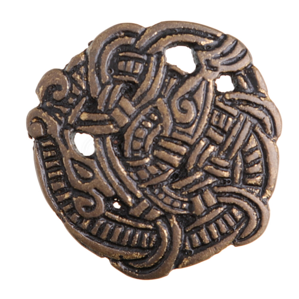 Erwecke deine Wikinger-Gewandung mit dieser authentischen Messing-Fibel zum Leben, die die nordische Kunst des 9. und 10. Jahrhunderts verkörpert. Sie ist nicht nur eine praktische Möglichkeit, einen Umhang zu schließen, sondern ein mächtiges Symbol und ein tragbares Stück Geschichte. Die Fibel ist präzise aus massivem Messing gegossen und ihre Oberfläche ist mit einer antiken Patina veredelt, die jedes Detail des komplexen Geflechts hervorhebt. Das zentrale Motiv ist das sogenannte „Greiftier“, ein typisches Merkmal des wikingerzeitlichen Borre-Stils. Sie ist das ideale Accessoire für Reenactment, LARP oder als ausdrucksstarkes Schmuckstück für jeden Liebhaber der Wikingerkultur. Weitere Produktinformationen ...