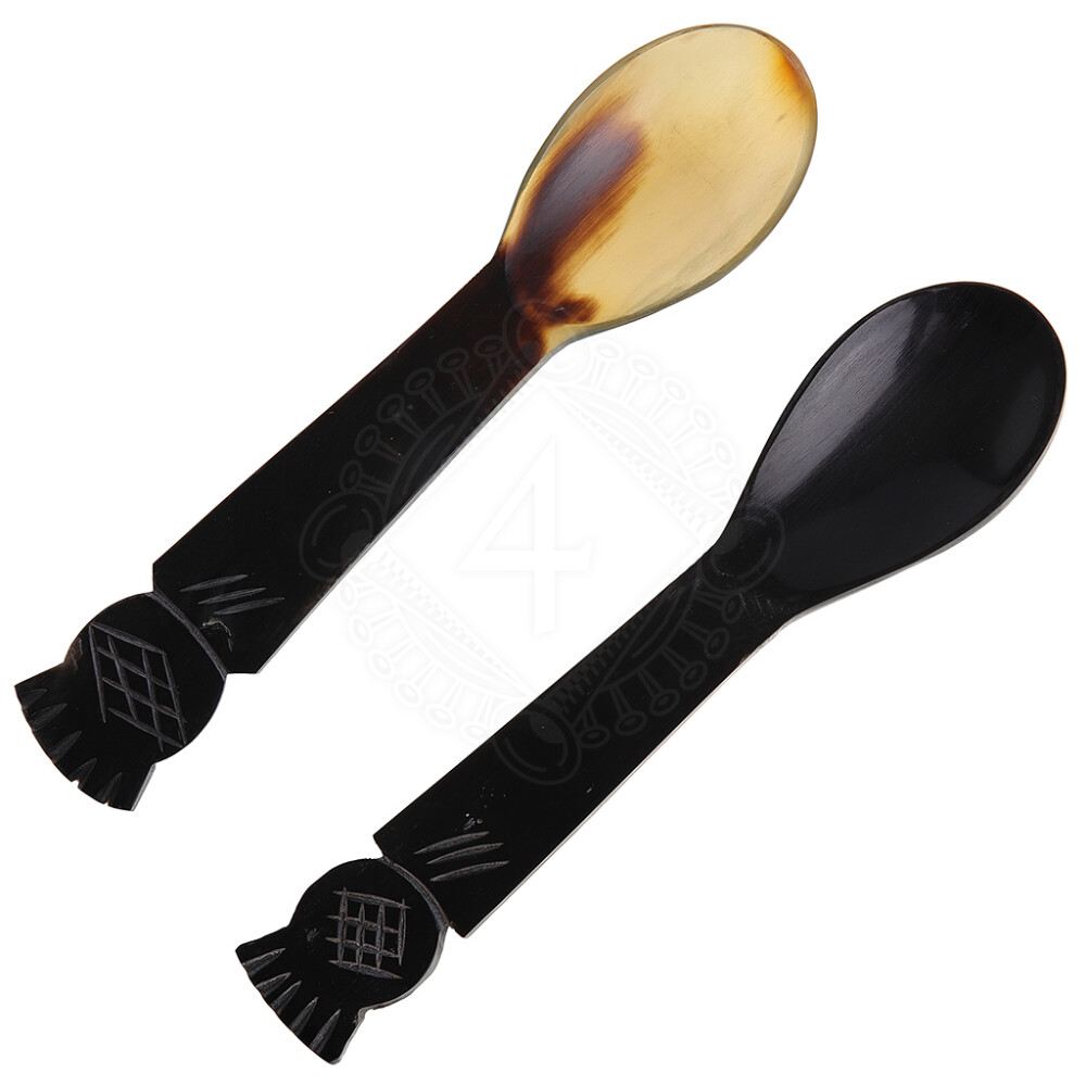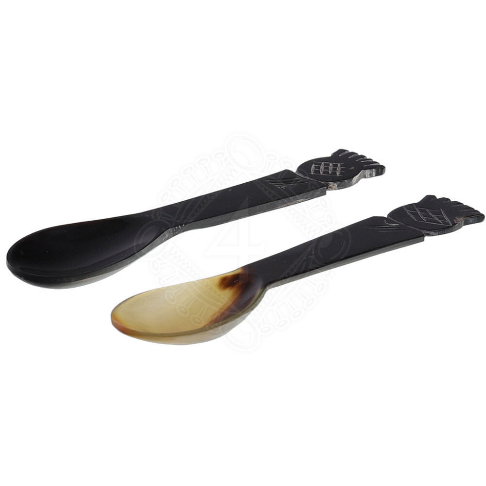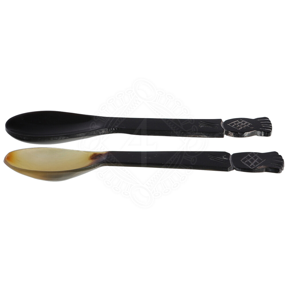 Hornlöffel mit geschnitzter Distel am Griffende, 1 St.