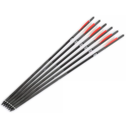 22 Zoll Länge gerade befiedert mit Q2i Fusion® X-II 3,0" Vanes. Mit vorinstallierten Nocken, 400 Grain Gesamtgewicht, 0,346" Durchmesser.