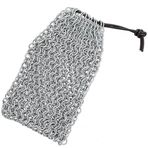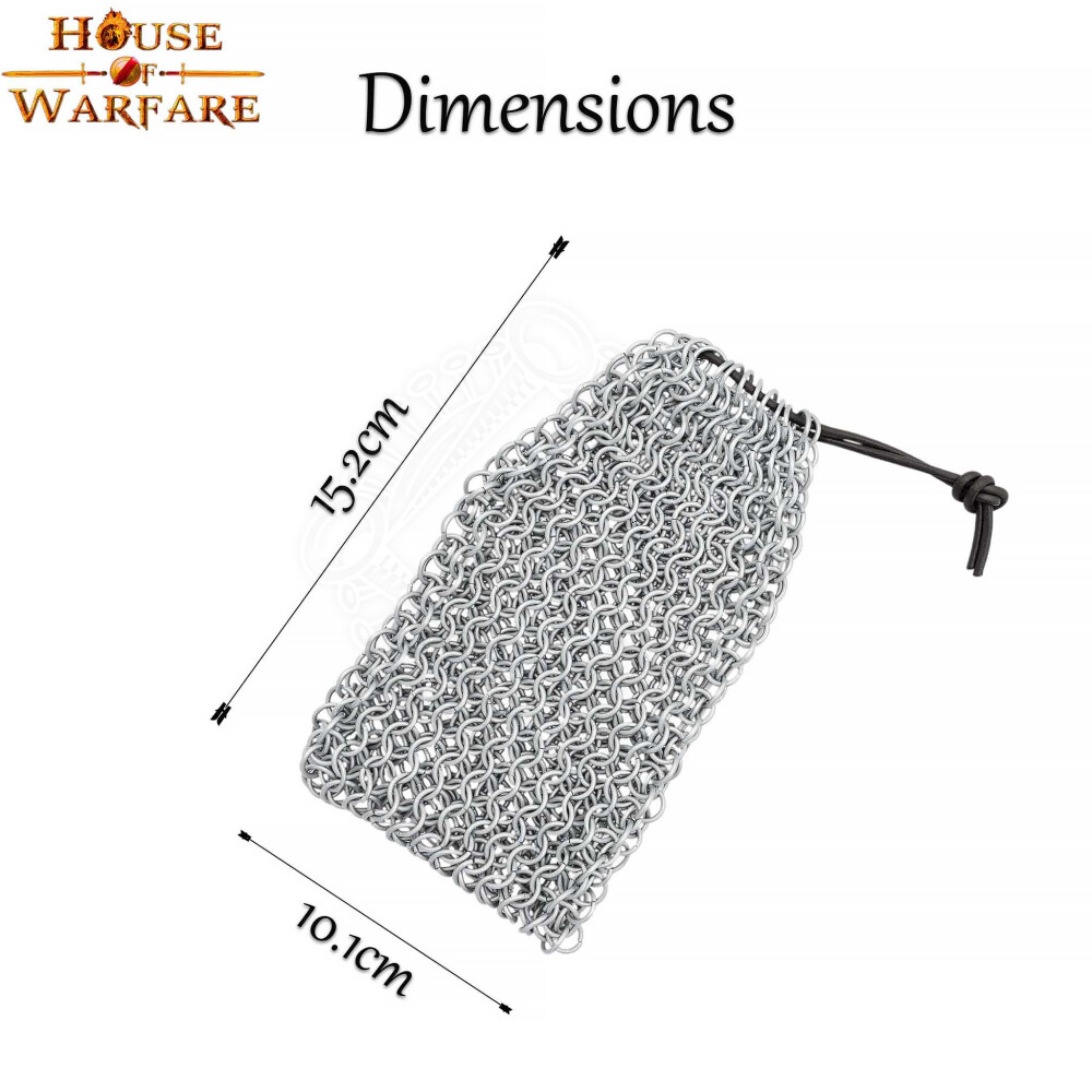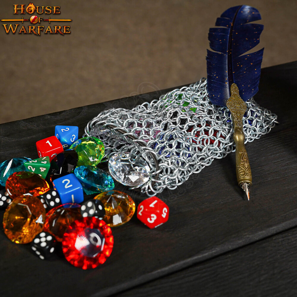 Dieser Kettenbeutel von House of Warfare ist im traditionellen "4-in-1"-Geflecht gefertigt (jeder Ring verbindet vier weitere), das die Grundlage historischer Kettenrüstungen bildet. Er ist nicht nur ein Würfelbeutel; er ist ein Miniatur-Panzerhemd für deine wichtigsten Gegenstände. Die verzinkte Oberfläche der Stahlringe verleiht ihm nicht nur ein glänzendes Aussehen, sondern schützt ihn vor allem vor Korrosion. Du kannst ihn also bedenkenlos am Gürtel tragen, selbst im Regen (siehe Pflegehinweise).