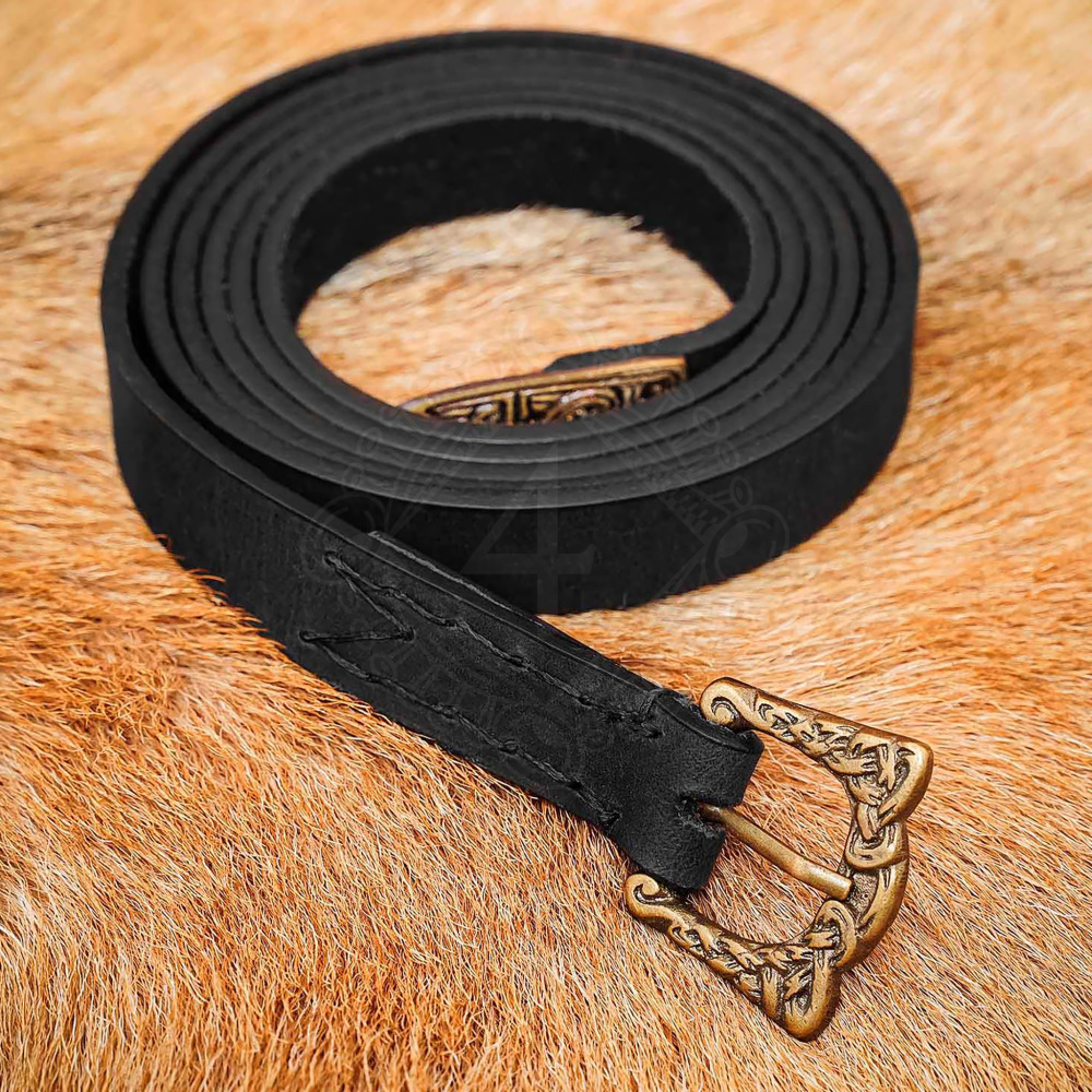 Vervollständige dein historisches Gewand mit einem Stück echter nordischer Handwerkskunst! Dieser Wikinger-Gürtel ist nicht nur ein praktisches Accessoire, sondern auch ein Statussymbol, inspiriert von den reichen Funden des 10. Jahrhunderts. Er ist aus hochwertigem Echtleder mit einer Stärke von über 3 mm gefertigt, was außergewöhnliche Haltbarkeit und eine lange Lebensdauer garantiert. Das Highlight des Gürtels ist die wunderschön verzierte Messingschnalle und der passende Endbeschlag, deren Design mit aufwendigen Knotenmustern auf Artefakten aus dem legendären Wikinger-Handelszentrum Birka basiert. Egal, ob du dich für ein LARP, ein historisches Fest vorbereitest oder deinem Stil einfach einen Hauch nordischer Mythologie verleihen möchtest, dieser Gürtel ist die richtige Wahl. Weitere Produktinformationen ...