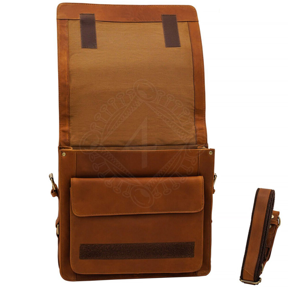 Neben ihrem beeindruckenden Aussehen ist diese Laptoptasche auf Praktikabilität ausgelegt. Das geräumige, gefütterte Hauptfach bietet sicher Platz für einen Laptop (bis ca. 14 Zoll), A4-Dokumente und Bücher. Unter der Klappe befindet sich eine große offene Tasche für den schnellen Zugriff auf ein Tablet oder Notizbuch. Wertsachen wie Geldbörse oder Handy kannst du sicher in der hinteren Reißverschlusstasche verstauen. Für bequemen Tragekomfort sorgt der breite, längenverstellbare Schultergurt.