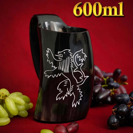 Hornkrug aus echtem Horn mit Löwengravur, 600 ml - Outlet