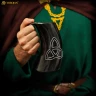 Die keltische Kunst ist bekannt für ihre komplexen Knoten und Spiralen. Das auf diesem Krug eingravierte Symbol ist von diesen uralten Motiven inspiriert, die oft weder Anfang noch Ende hatten und so die Unendlichkeit des Lebens, die Verbundenheit und den Schutz symbolisierten. Viele keltische Symbole galten als Talismane, die Glück, Stärke oder Schutz vor bösen Mächten bringen sollten. Dieser Krug trägt somit das Erbe der reichen keltischen Tradition und ihres Glaubens an die Macht der Symbole in sich.
