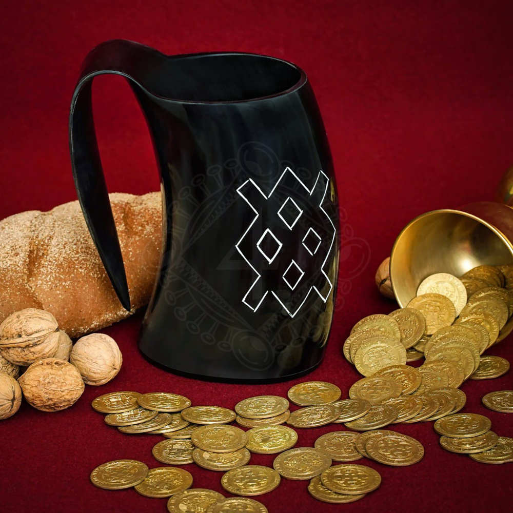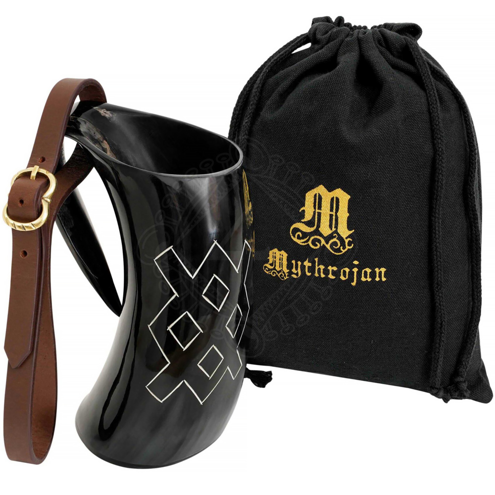 Keltischer Hornkrug mit Glückssymbol-Gravur - Outlet