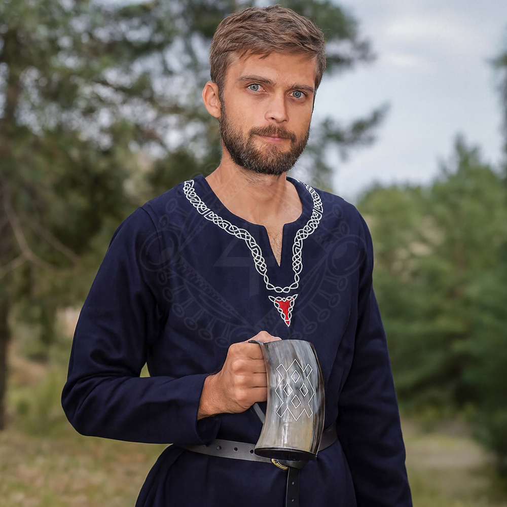 Bereite Dich auf epische Festmähler und Abenteuer vor mit diesem einzigartigen Krug aus echtem Horn von der Marke Mythrojan! Er stillt nicht nur den größten Durst eines Kriegers, sondern wird dank der detailreichen Gravur eines keltischen Glückssymbols zu Deinem persönlichen Talisman. Jedes Stück ist ein handgefertigtes Original mit einer lebensmittelechten Innenbeschichtung und einem praktischen Lederriemen zum Aufhängen am Gürtel. Er ist der perfekte Begleiter für Dein Bier, Deinen Wein oder Met, bereit für all Deine Abenteuer. Weitere Produktinformationen ...