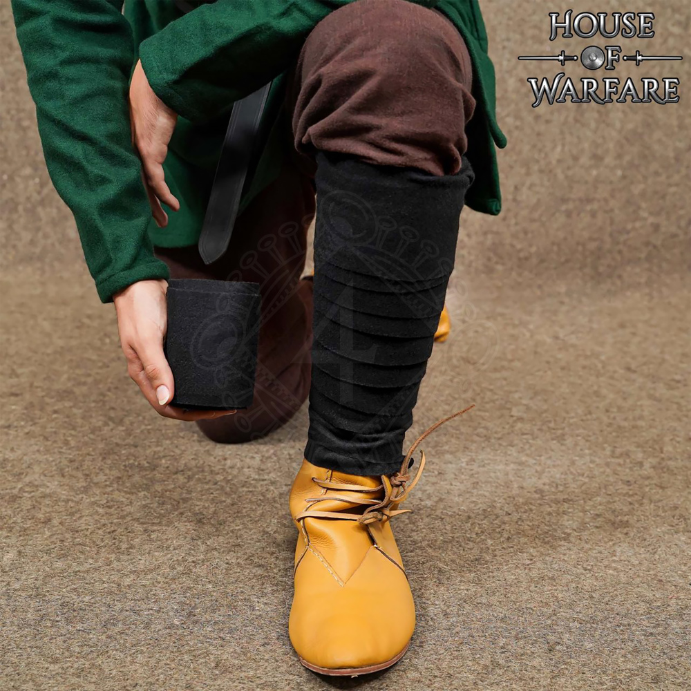 Achte beim Wickeln darauf, das Band nicht so fest anzuziehen, dass du das Gefühl in den Füßen verlierst – dies könnte die Durchblutung gefährden. Zu diesen Wadenwickeln empfehlen wir dir ein Paar gegossene Bronzewadenwickelhaken und eine passende Wolltunika aus unserem Sortiment, um ein komplettes und historisch stimmiges Set zu erstellen.