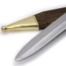 - Klinge aus Federstahl W.Nr. 1.7102 (DIN 54SiCr6) in Öl gehärtet, Rockwellhärte ca. 53 HRC