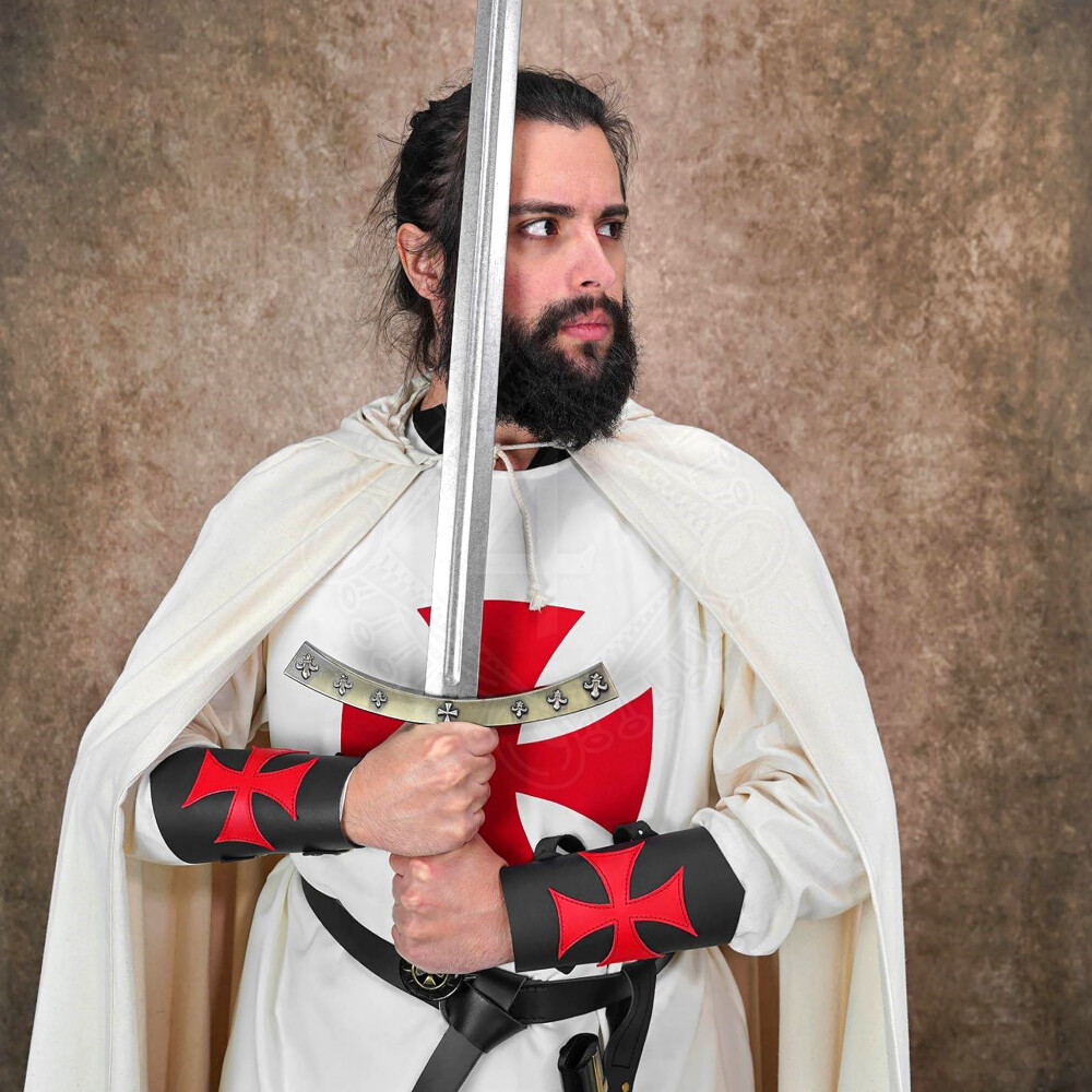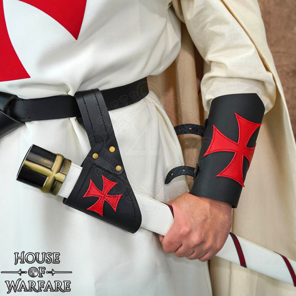 Schwarze Lederarmschienen kämpfender Kreuzritter