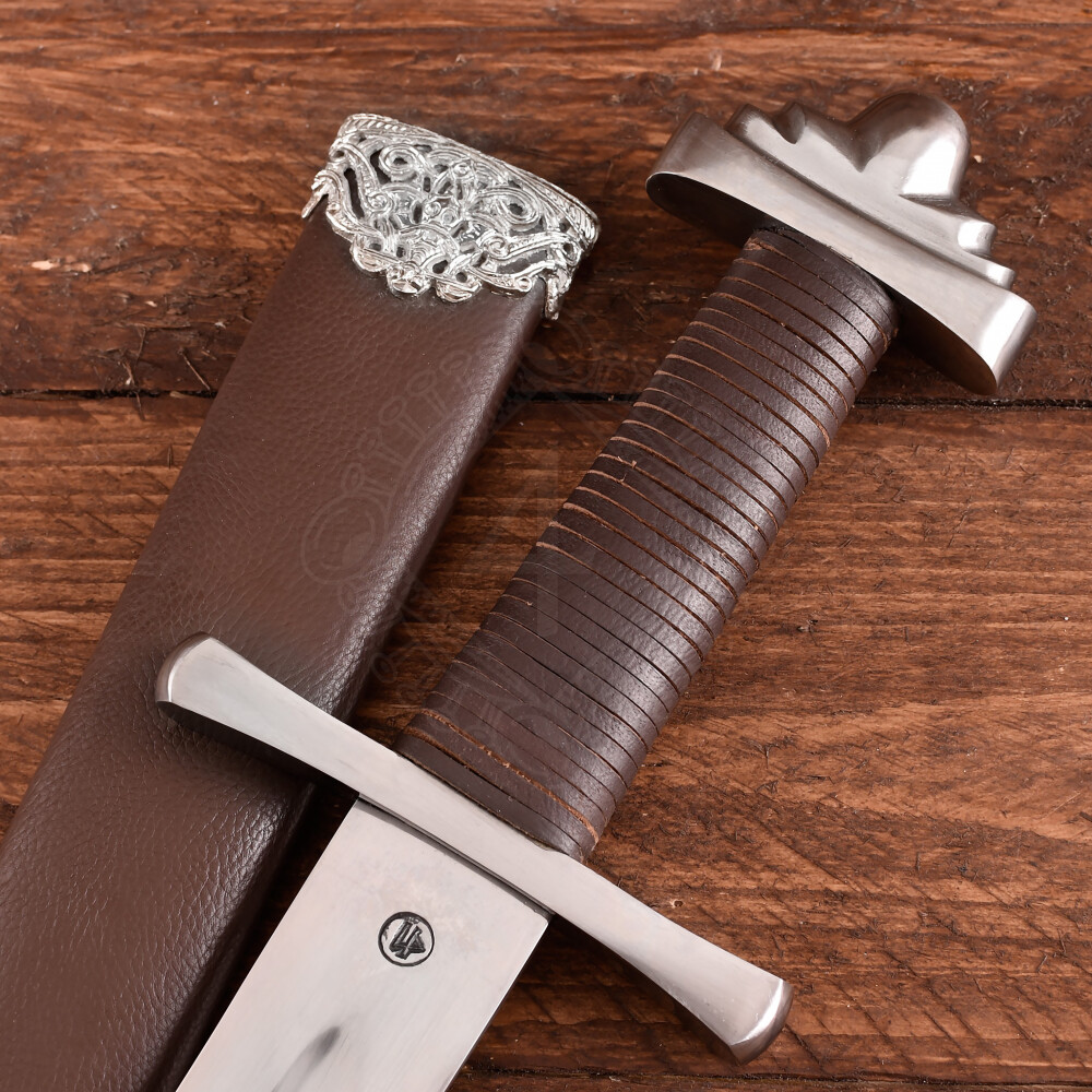 Das dazu passende Ortblech findest Du hier: Schwertscheiden-Ortblech für Wikingerschwerter, Artikelnr. 0101140402.