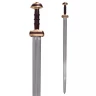 In seiner Formgebung ist dieses Einhandschwert ein klassisches Beispiel für eine frühmittelalterlich-germanische Waffe.