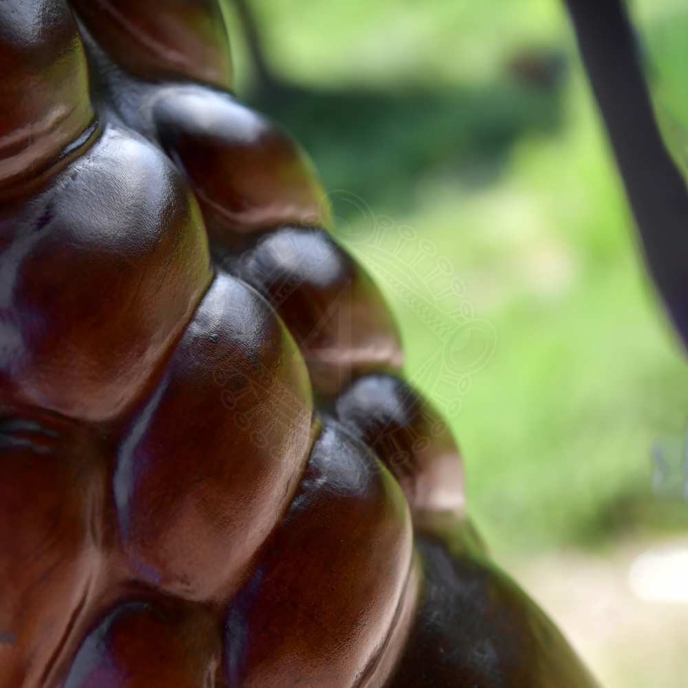 Bitte beachte, dass es sich um eine dekorative Replik bzw. ein Kostümteil für LARP, Theater und Cosplay handelt. Diese Rüstung ist nicht als Schutzausrüstung für den Vollkontakt-Schwertkampf (Buhurt), HEMA oder sportliches Fechten zertifiziert. Das Leder dämpft zwar leichte Treffer durch Polsterwaffen ab, bietet jedoch keinen ausreichenden Schutz gegen Stahlklingen oder schwere stumpfe Schläge.