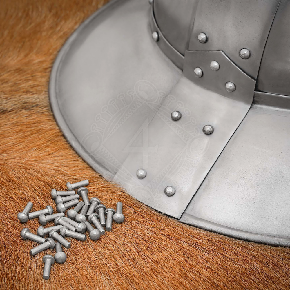 Es sind die Details, die ein Meisterwerk vom Durchschnitt unterscheiden. Mit diesen Stahlnieten mit Rundkopf erhältst du den grundlegenden Baustein für deine historischen Projekte. Egal, ob du eine Plattenrüstung herstellst oder reparierst, einen Helm zusammensetzt, Lederriemen befestigst oder einen robusten Schild baust – diese Nieten bieten dir eine feste und historisch korrekte Verbindung. Sie sind aus Baustahl (mild steel) gefertigt, der stark genug ist, um Belastungen standzuhalten, und sich gleichzeitig gut beim Vernieten formen lässt. Ihr klassischer Rundkopf ist typisch für Rüstungen vom 12. bis zum 16. Jahrhundert. In dieser praktischen Packung findest du 25 Stück, bereit für deine Werkstatt. Weitere Produktinformationen ...