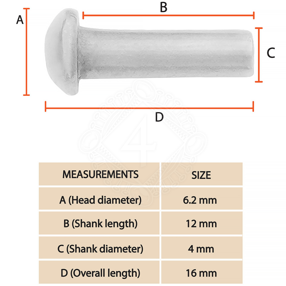 Nieten mit Rundkopf, 16x4 mm, aus Baustahl, 25er-Pack