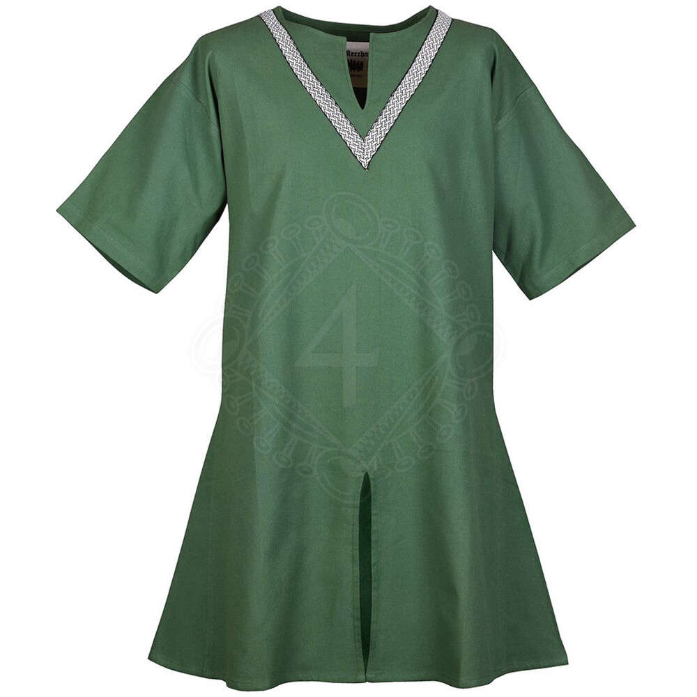 Mittelalterliche Kurzarm-Tunika Ailrik mit Bordüre, grün