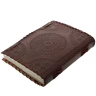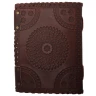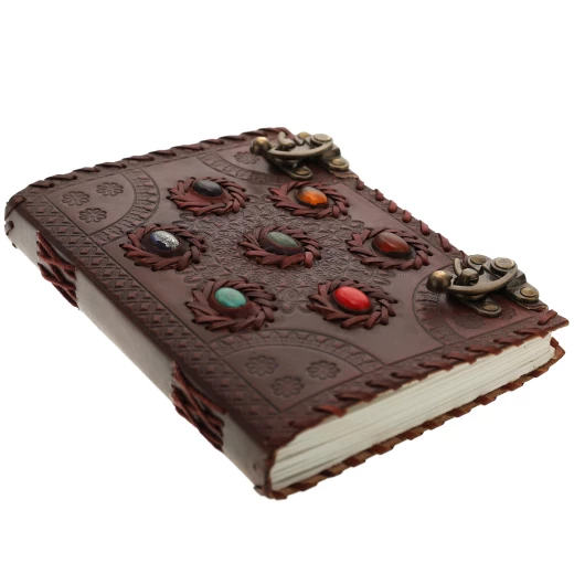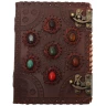 Leder-Notizbuch mit dekorativer Prägung und sieben Chakra-Steinen in einem Kreis