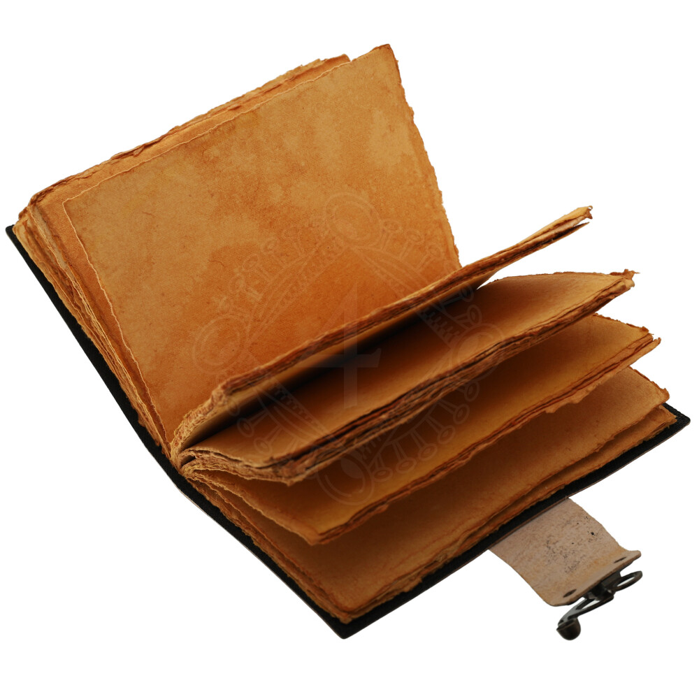 Im Inneren des Notizbuchs finden Sie 100 Blatt (200 Seiten) hochwertiges handgefertigtes Pergamentpapier. Dieses alt aussehende säurefreie Papier besteht aus reiner Baumwolle, die eine Haptik und Textur von feiner Jute und Leinwand vermittelt. Sie können auf diesem unlinierten Papier mit einem Kugelschreiber oder Bleistift schreiben und mit Buntstiften und Acrylfarben malen. Tintenfüller, Wasserfarben usw. können auf diesem Papier auslaufen.