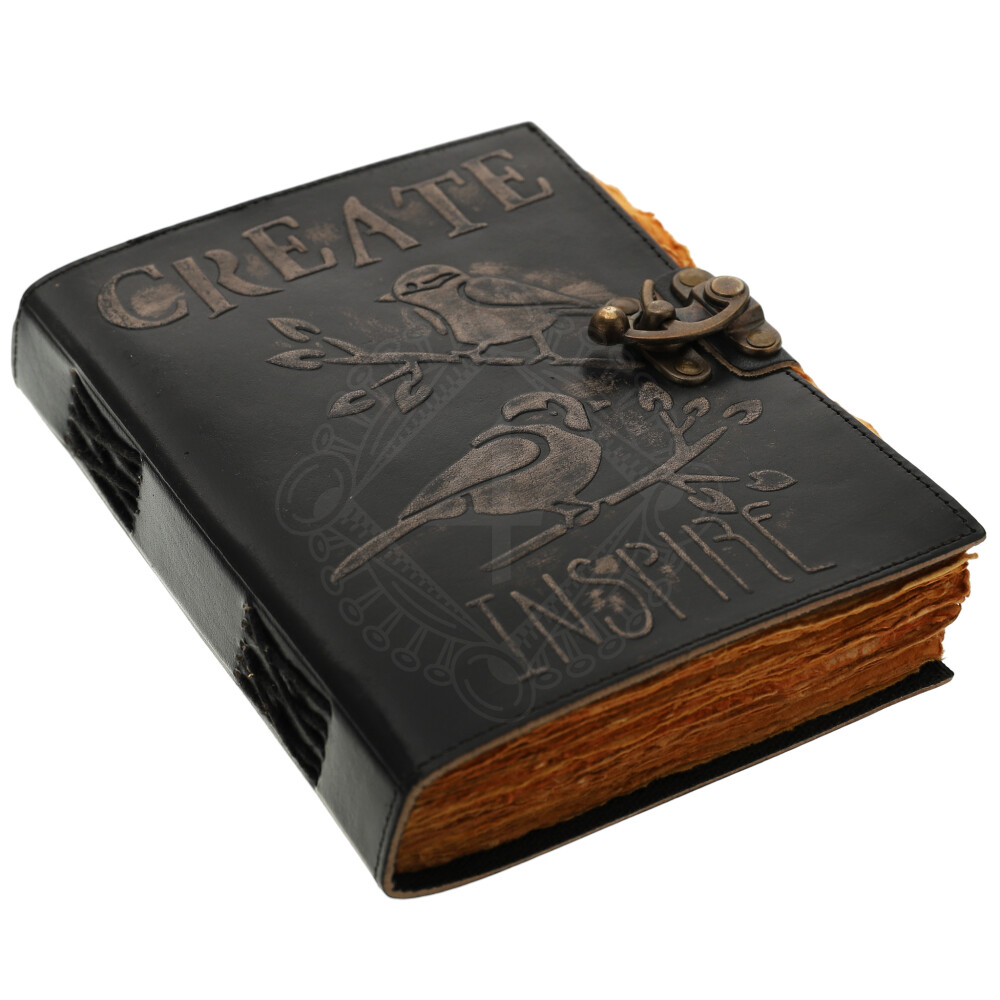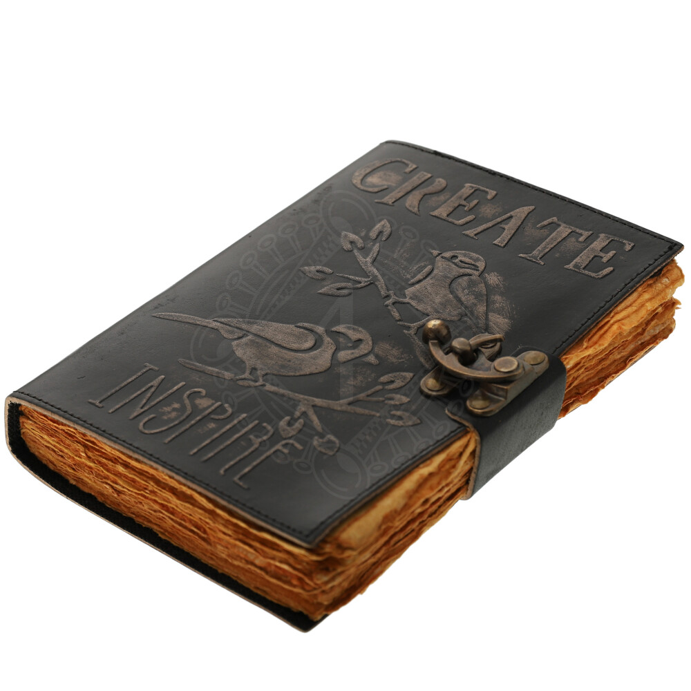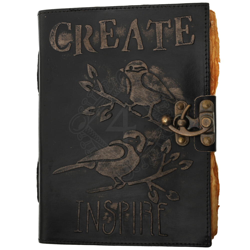 Notizbuch aus Leder mit geprägter Aufschrift Create Inspire und handgeschöpftem Papier
