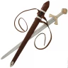 Die Originalscheide ist nicht erhalten geblieben. Die mit diesem außergewöhnlichen Schwert gelieferte Replik einer Scheide ahmt jedoch die zu jener Zeit üblichen Designs nach. Der Hersteller fertigte eine wunderschöne Scheide aus hochwertigem Leder an, in die er per Laser Muster einbrannte, um die Knaufverzierung nachzubilden. Zur Scheide gehört auch ein stabiler Ledergürtel.