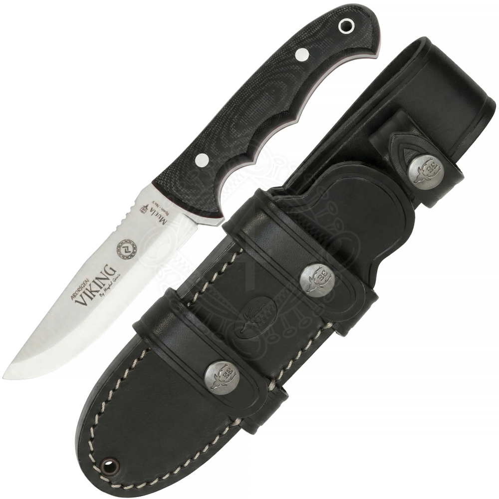 Die Klinge ist aus dem beliebten Messerstahl X50CrMoV15 gefertigt. Während der Produktion wird der Stahl durch das CRYO-T-Verfahren, eine Tiefkühlbehandlung, veredelt. Dieser Prozess wandelt den weichen Restaustenit in harten Martensit um, wodurch der Stahl eine wesentlich homogenere und stabilere Struktur erhält. Das Ergebnis ist eine höhere Zähigkeit, ein besserer Widerstand gegen Ausbrüche an der Schneide und eine insgesamt höhere Zuverlässigkeit. Die Konstruktion des Messers ist ein Vollerl (Full Tang), was bedeutet, dass der Stahl in voller Stärke durch den gesamten Griff verläuft. Die Klinge ist zudem mit den Gravuren VIKING und ABORIGEN verziert.