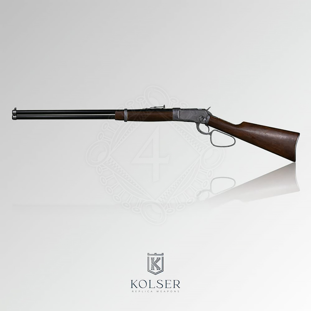 Unterhebelrepetierer (Lever-Action-Gewehre) wurden in der zweiten Hälfte des 19. Jahrhunderts zum absoluten Symbol für die Expansion in den amerikanischen Westen. Dieses spezielle Modell ist visuell stark von den berühmten Gewehren jener Zeit inspiriert. Die hohe Feuerrate, die durch den genialen Hebelmechanismus ermöglicht wurde, verschaffte den damaligen Siedlern und Sheriffs einen enormen taktischen Vorteil gegenüber den veralteten einschüssigen Vorderladern. Das Gewehr wird gefertigt mit höchstem Augenmerk auf historische Details. Der Schaft und der Vorderschaft bestehen aus massivem Holz, was der Waffe ein authentisches Gewicht und eine realistische Haptik verleiht. Der metallene Verschluss und die Schaftkappe verfügen über ein attraktives Oberflächenfinish, das wunderbar mit dem brünierten Lauf und dem Röhrenmagazin kontrastiert.