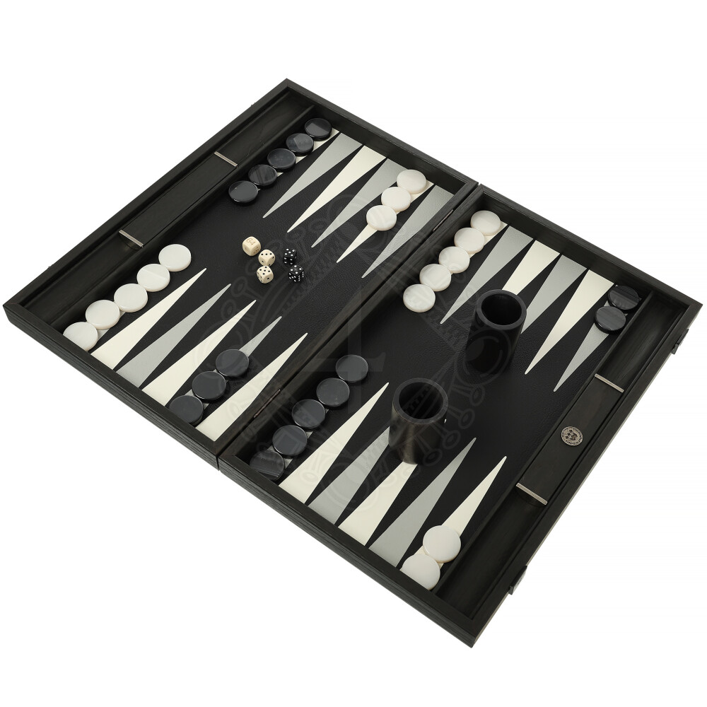 Backgammon Klassik, schwarz mit grau und eisweiß