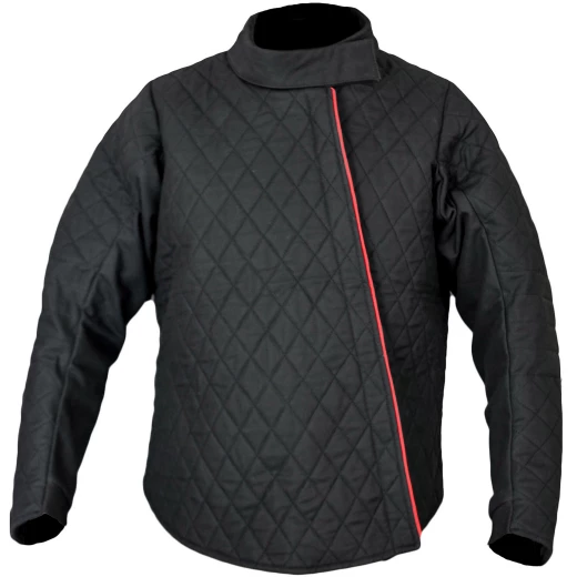 Die Leichte HEMA-Trainingsjacke von Red Dragon wurde für HEMA konzipiert und besteht aus strapazierfähiger Baumwolle mit einer Stärke von 350N sowie einem Innenfutter. Die Jacke hat eine geringere Polsterung als die HEMA-Trainingsjacke und ist besser für Einhandwaffen wie Rapier und Säbel geeignet. Diese Jacke hat keine Polsterung auf dem Rücken, da es sehr selten vorkommt, dass man hier Schläge abbekommt - besonders mit Rapieren und Säbeln. Dies hat den Effekt, dass das Gewicht der Jacke reduziert und gleichzeitig die Atmungsaktivität erhöht wird. Auch die Innenseite der Arme ist nicht gepolstert, was das Gewicht weiter reduziert. Der gepolsterte Kragen ist mit einem Klingenfänger ausgestattet, der vor verirrten Stichen schützt, die unter den Latz einer Fechtmaske gelangen können. Auf der Rückseite der Jacke befindet sich ein verstellbarer Gurt mit Klettverschluss, der es ermöglicht, die Jacke an der Taille einzuziehen, um eine schlankere Passform zu erhalten.