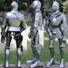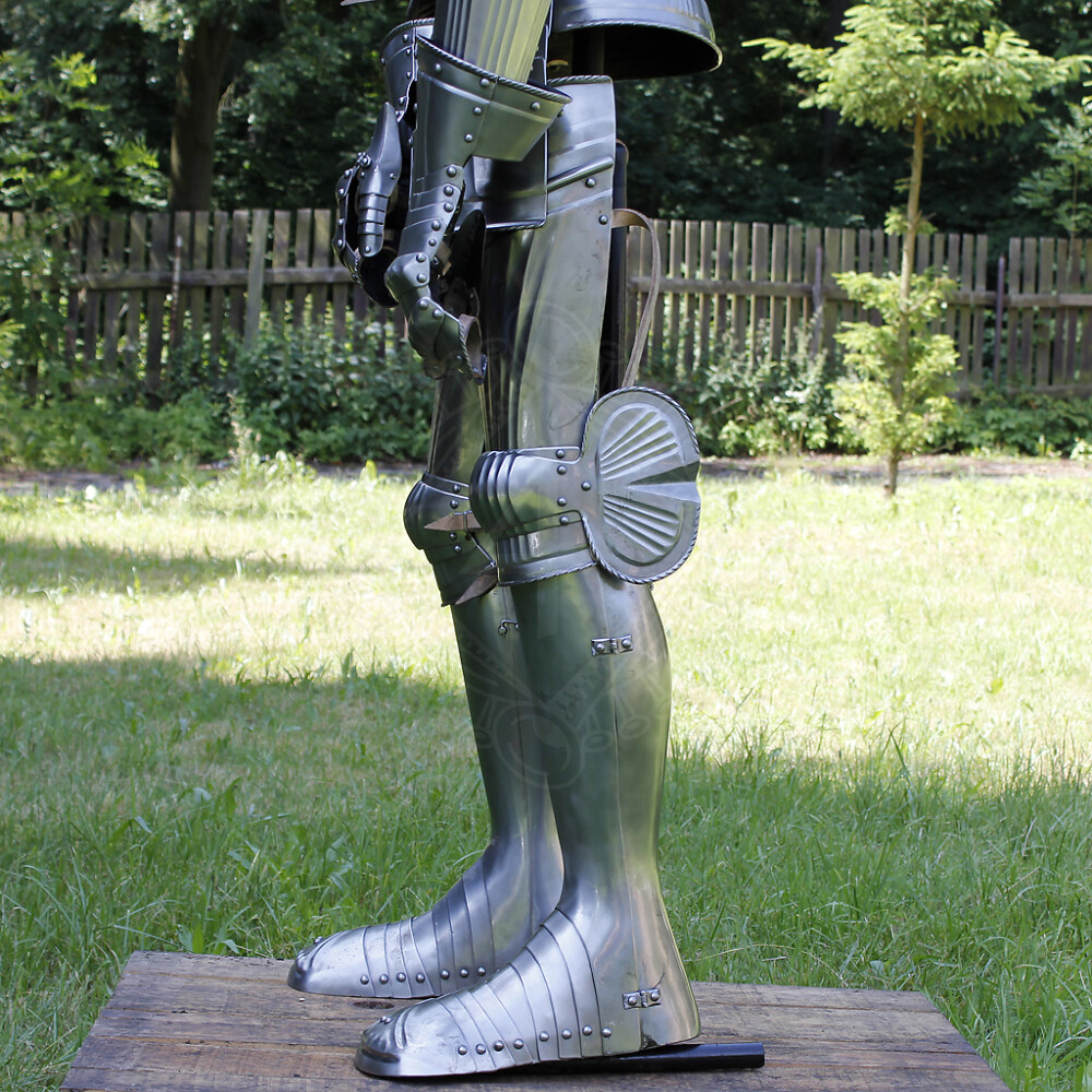 2xMaximilianer Rüstung ist eine moderne Bezeichnung für den Stil des frühen 16. Jahrhunderts von einer deutschen Rüstung, offenbar zunächst geschaffener für Kaiser Maximilian I. Sie ist charakteristisch mit Armet-Helm und kleinen fächerförmiger schmaler Kannelierung. Ihr Brustpanzer ist oft scharf tailliert und Ihr Eisenschuhe haben eine breite Kuhmaulform. Weitere Produktinformationen ...