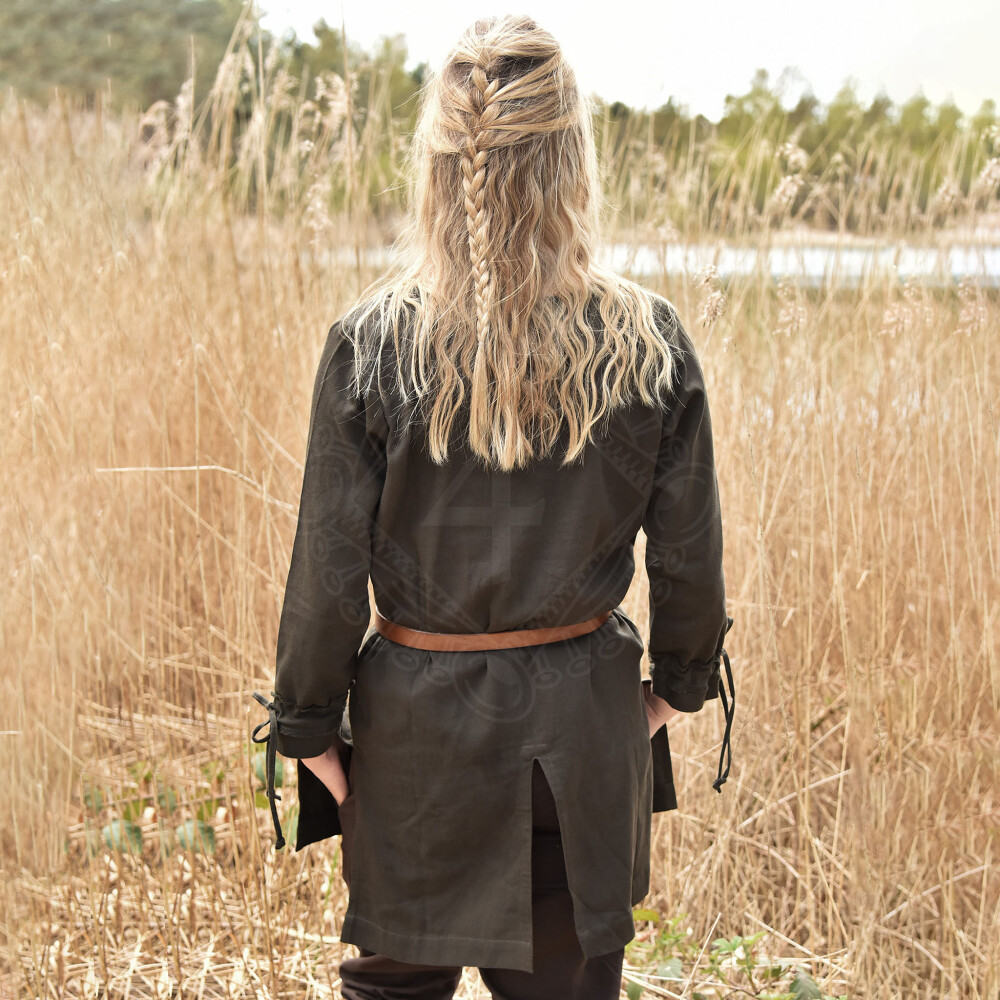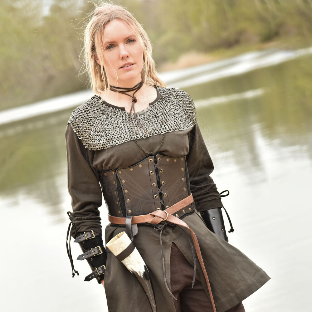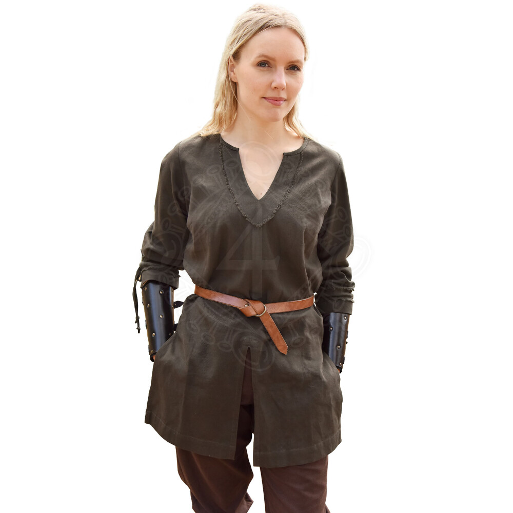 - Wir empfehlen, diese Tunika mit einer schlichten Hose und vielen Lederdetails zu kombinieren, um einen taffen Look zu kreieren. Mit den passenden Accessoires erhält man so ein stimmiges, nordisches Kostüm für eine Schildmaid.