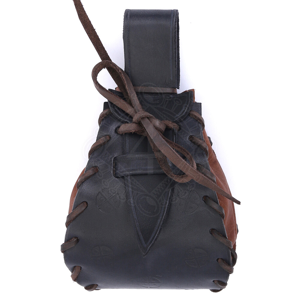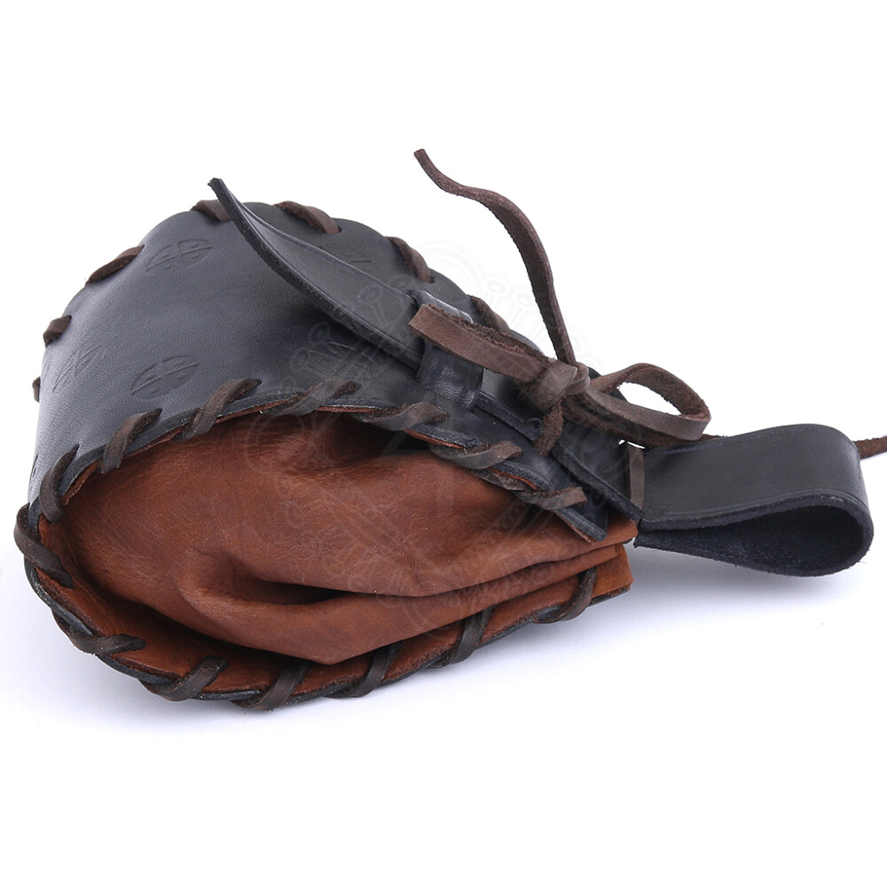 Dieser normannische Beutel aus dem 9. Jahrhundert ist aus Rindsglattleder mit einer Stärke bis 2,5mm hergestellt. Die Seiten des Beutels sind aus feinem Rindsleder gefertigt, das es ermöglicht, das Produkt einfach zusammenzuziehen und zu öffnen. Dieser luxuriöse Beutel wird am Gürtel mittels einer Schmuckschleife getragen, die in eine einfache Klappe übergeht, die gleichzeitig als Verschluss dient. Der Vorder- und Hinterteil sind mit den gerafften Seiten mit Umflechtung mit einer Lederschnur verbunden. Weitere Produktinformationen ...