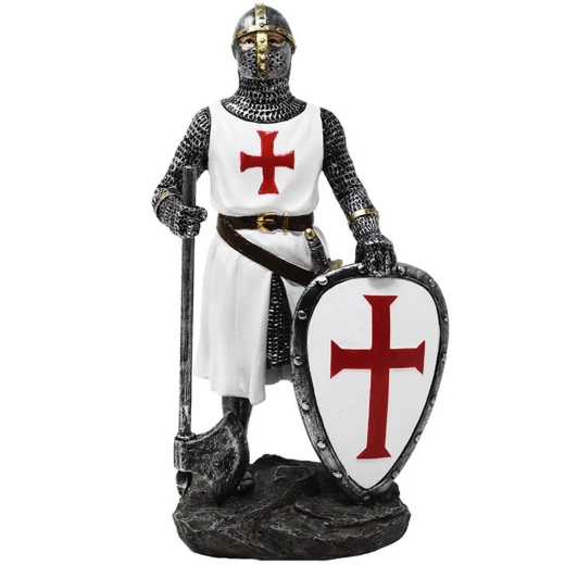 Weißer Kreuzritter Figur in Kettenrüstung mit Axt und Schild 18,5cm