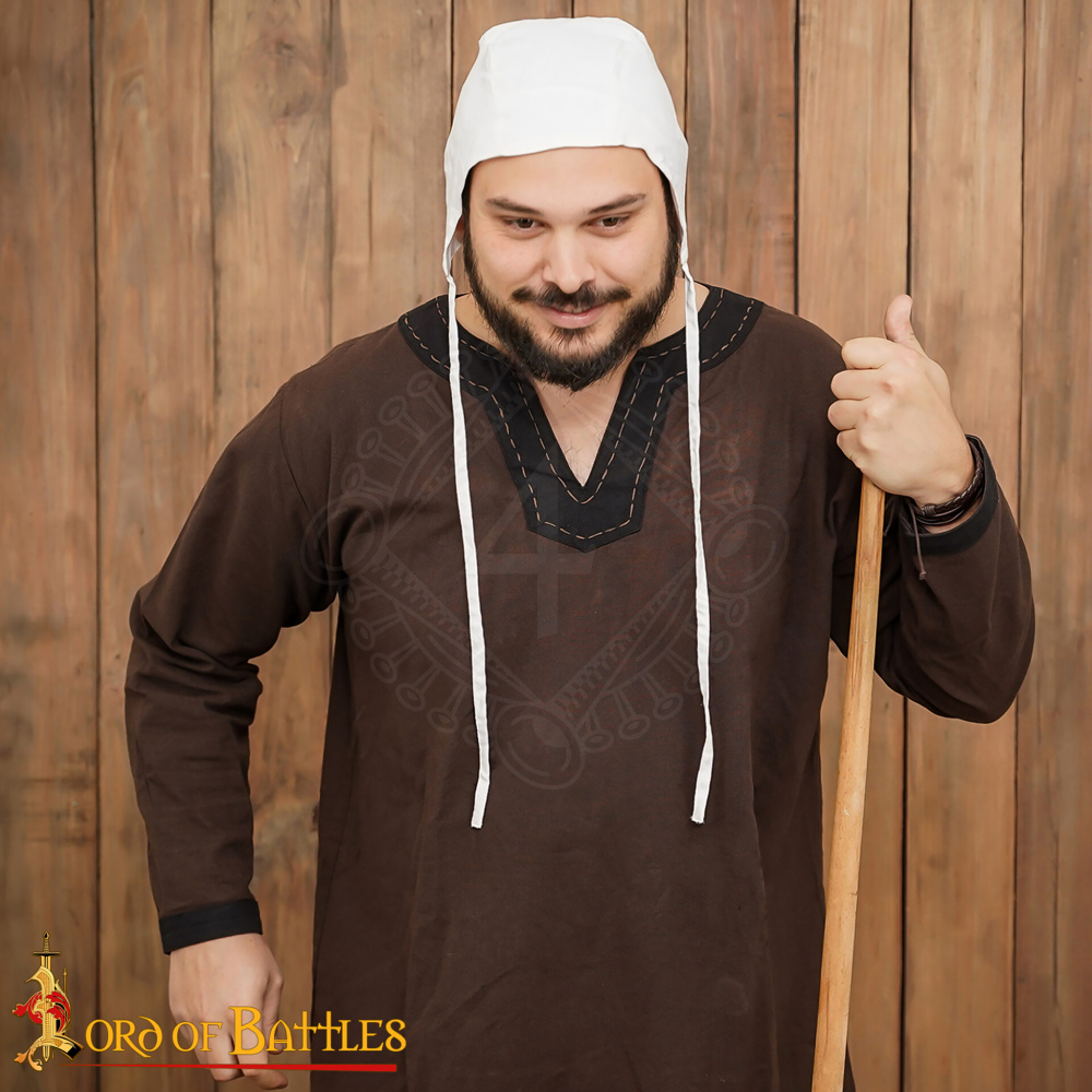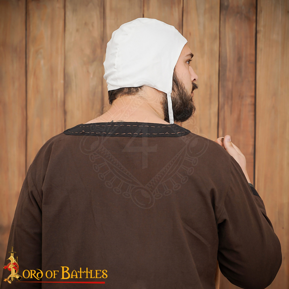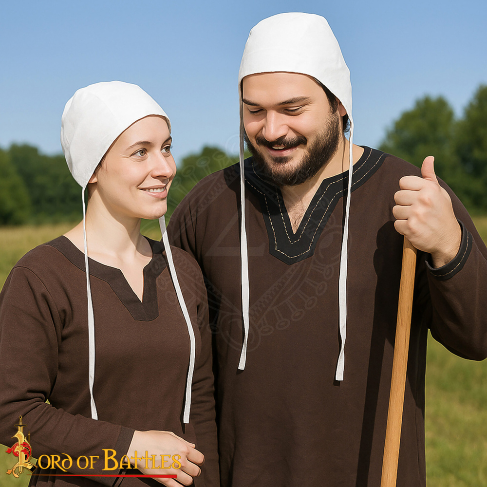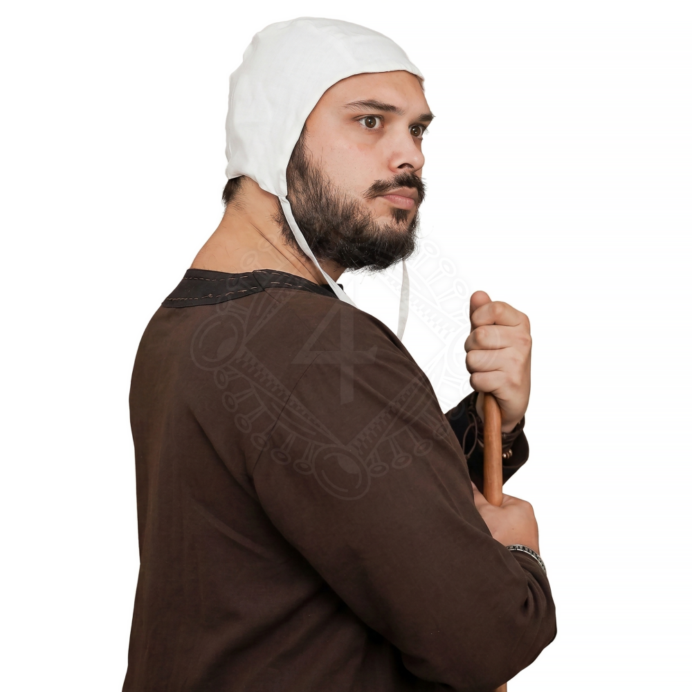 Die Bundhaube war in ganz Europa vom Hoch- bis zum Spätmittelalter (ca. 11. bis 15. Jahrhundert) ein allgegenwärtiges Kleidungsstück. Sie wurde von Männern, Frauen und Kindern aller Gesellschaftsschichten getragen. Dem einfachen Volk diente sie als Schutz der Haare vor Schmutz und Staub bei der Arbeit. Krieger und Ritter trugen sie hingegen als hygienische Basisschicht unter einer Kettenhaube oder einem schweren Stahlhelm. Sie verhinderte das Scheuern des Metalls auf der Haut und saugte den Schweiß auf. Heute kannst du diese Haube perfekt für Mittelaltermärkte, Reenactment-Veranstaltungen, LARP oder als authentische Theaterrequisite nutzen.
