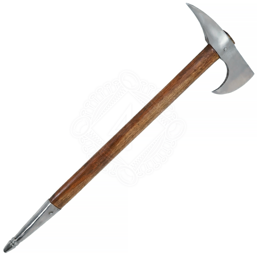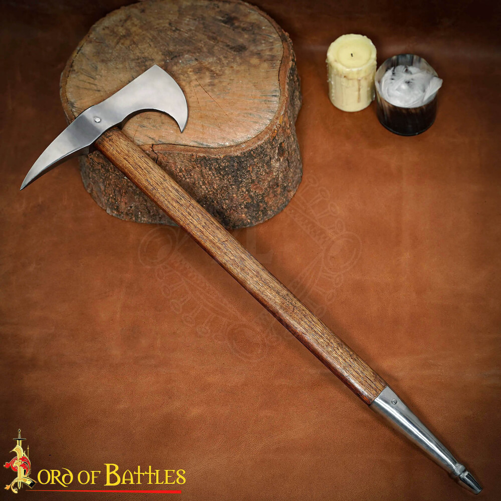 Wir präsentieren Dir eine meisterhafte Rekonstruktion der legendären Sagaris, der bevorzugten Waffe der skythischen und sakischen Reiterkrieger. Diese außergewöhnliche Streitaxt vereint antike Ästhetik mit der funktionalen Brutalität der Steppenvölker. Wenn Du auf der Suche nach einem authentischen Accessoire für Dein historisches Lager, einem Prunkstück für Deine Sammlung oder einer beeindruckenden Requisite für LARP bist, ist diese Axt genau das Richtige für Dich. Mit ihrem handgeschmiedeten Kopf aus Kohlenstoffstahl und dem edlen Schaft aus Teakholz hältst Du ein Stück Geschichte in den Händen, das bereits die Heere von Alexander dem Großen erzittern ließ. Hol Dir diese einzigartige Reiterwaffe und vervollständige Deine Ausrüstung mit einem Hauch von antiker Macht. Die Sagaris besticht durch ihre exzellente Gewichtsverteilung und handwerkliche Präzision. Der handgeschmiedete Kopf zeigt authentische Schmiedespuren, die jedes Stück zu einem Unikat machen. Der Schaft aus robustem Teak- oder Eschenholz bietet nicht nur eine natürliche Optik, sondern auch eine hohe Widerstandsfähigkeit. Die verstärkte Endkappe aus Metall schützt das Holz und sorgt für eine optimale Balance, was die Handhabung im Training oder bei Präsentationen deutlich verbessert. Weitere Produktinformationen ...