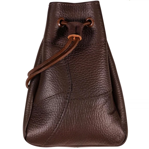 Der Beutel ist aus Echtleder mit einer markanten, genarbten Struktur gefertigt, die ihm Charakter verleiht. Jedes Stück ist durch die Handnaht ein Unikat.