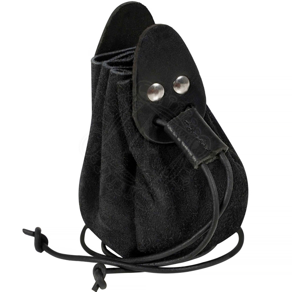 Schwarzer Wildlederbeutel für Münzen und Würfel, 10 cm