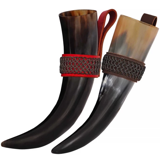Lösche deinen Durst wie ein echter Krieger des Nordens mit diesem massiven Trinkhorn! Dank des großzügigen Fassungsvermögens von 400-600 ml und des einzigartigen Designs wirst du zum Mittelpunkt jedes Festmahls, LARP-Events oder Mittelalterfestes. Dies ist nicht nur ein Trinkgefäß – es ist ein Symbol der Stärke und ehrlicher Handwerkskunst, das die natürliche Schönheit von Horn mit der rauen Ästhetik eines Kettenhemdes verbindet. Mach dich bereit für Trinksprüche, die in Erinnerung bleiben. Weitere Produktinformationen ...