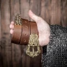 Schmücke deine Tunika mit einem Meisterstück der Wikinger-Handwerkskunst! Dieser Ledergürtel ist eine originalgetreue Nachbildung eines historischen Fundes aus der Wikingerstadt Birka und besticht durch eine massive Messingschnalle mit einem aufwendigen Pferdemotiv und einem Riemenendbeschlag in Form einer Schlange im Jelling-Stil. Hergestellt aus hochwertigem und robustem Büffelleder, ist er das perfekte und funktionale Accessoire für jedes Reenactment, LARP oder für Liebhaber der nordischen Geschichte. Wähle die Länge und Farbe, die am besten zu deiner Gewandung passt. Weitere Produktinformationen ...