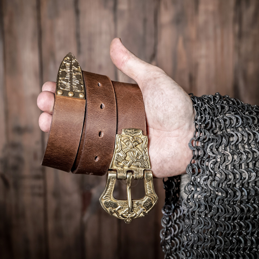 Lange Gürtel waren typisch für die Wikinger. Sie dienten nicht nur zum Gürtel der Kleidung, sondern auch als Statussymbol und als praktisches Element zum Aufhängen eines Messers (Sachs), einer Tasche oder anderer Notwendigkeiten. Das Tragen ist einfach und stilvoll:
