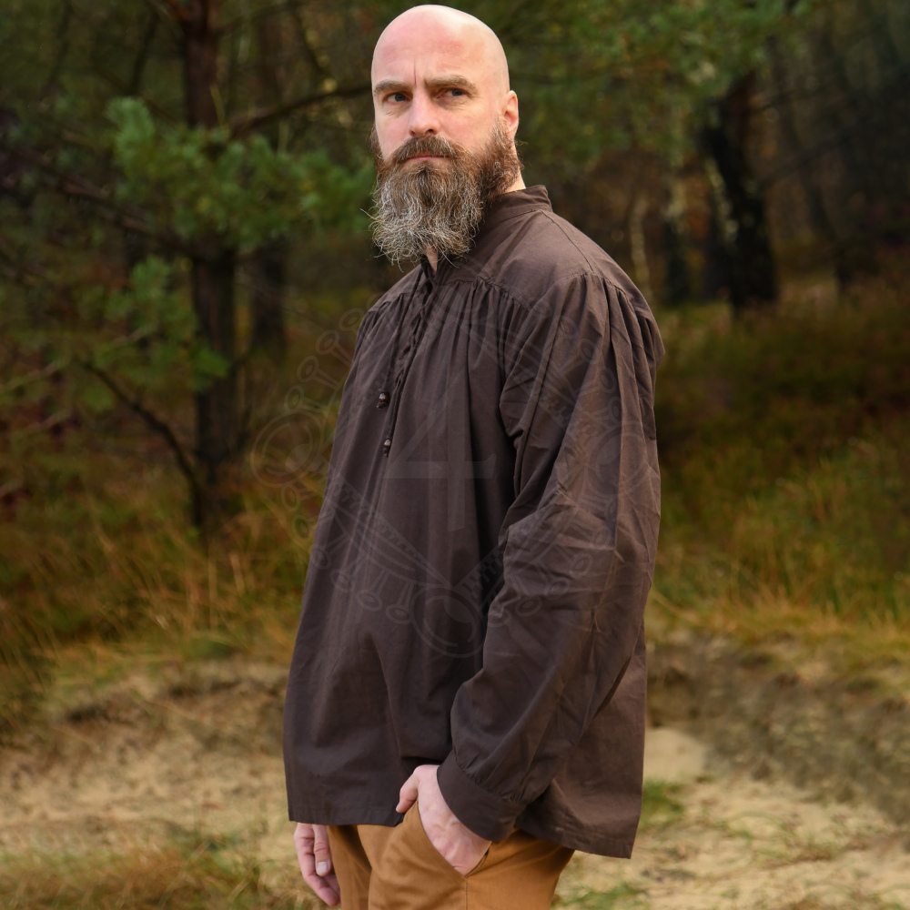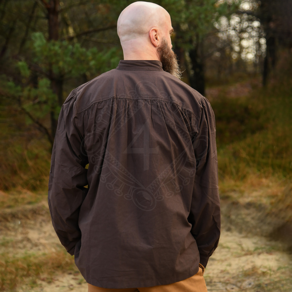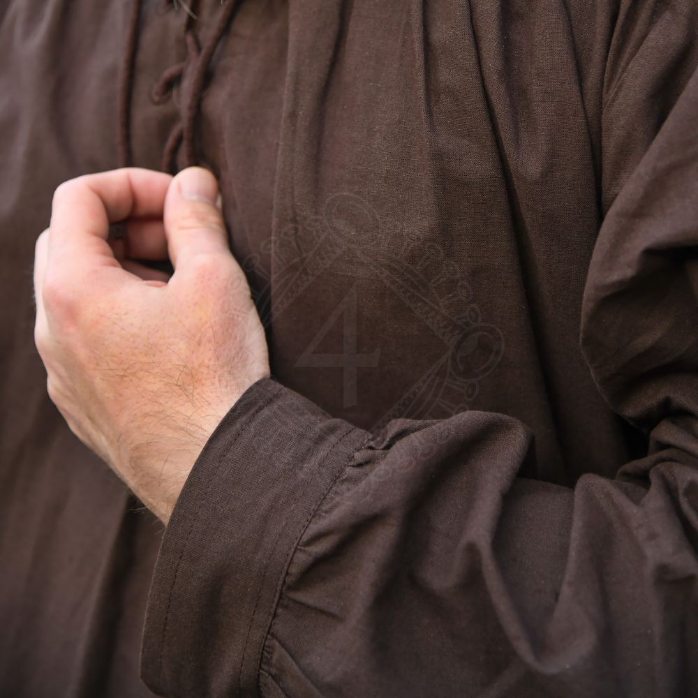 Spätmittelalter-Hemd Ludwig – Braun, Stehkragen & Schnürung
