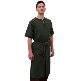 Erfrische deine historische Garderobe mit dieser mittelalterlichen Baumwolltunika, die authentisches Design mit der Praktikabilität kurzer Ärmel verbindet. Gefertigt aus angenehmer und atmungsaktiver 100 % Baumwolle, ziert sie eine detailreiche, kontrastierende Stickerei um den eleganten V-Ausschnitt, die ihr einen einzigartigen Charakter verleiht. Egal, ob du zu einem Sommerfestival, einer LARP-Veranstaltung aufbrichst oder ein bequemes und stilvolles Stück für Reenactment oder thematische Events suchst – diese Tunika ist eine ausgezeichnete Wahl für warme Tage und aktive Bewegung. Weitere Produktinformationen ...