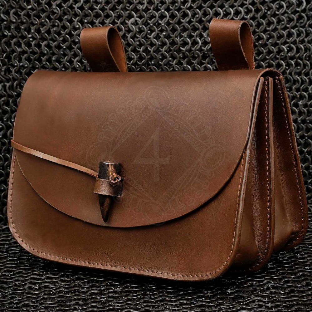 Im Mittelalter, als Kleidung noch keine Taschen hatte, wie wir sie heute kennen, waren Gürteltaschen und Beutel eine absolute Notwendigkeit. Sie wurden von Menschen aller Schichten getragen – Pilger bewahrten darin Essen und Gebetbücher auf, Kaufleute ihre Münzbeutel und Soldaten persönliche Kleinigkeiten. Die Qualität und Verzierung einer Tasche verriet oft den Status und Reichtum ihres Besitzers. Dieses Stück knüpft an ein jahrhundertealtes, bewährtes Design an, das funktional und zuverlässig ist.