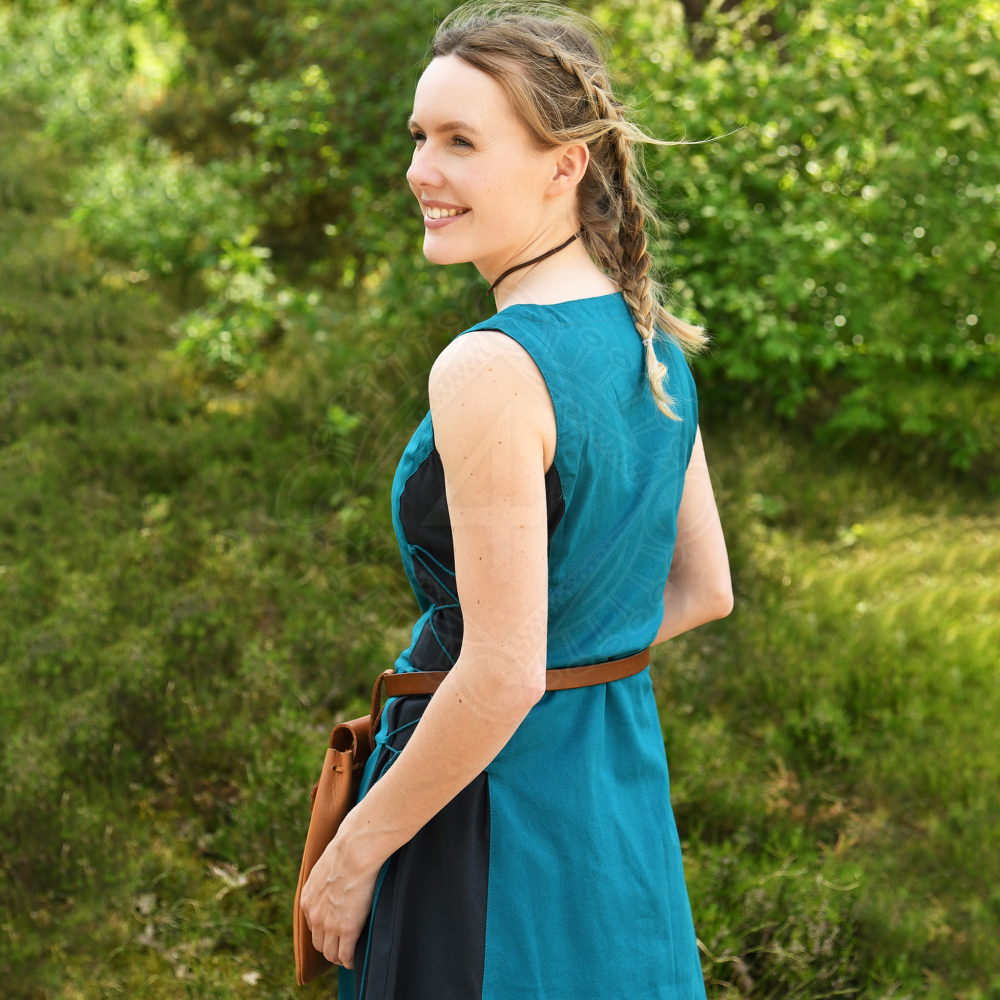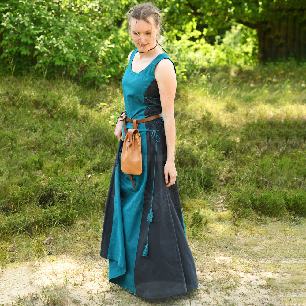 Dieses mittelalterliche Kleid ist Teil der Kollektion für historische Gewandung und Mittelalter-Kleidung für Herren, Damen und Kinder. Von der ersten Zeichnung bis zum letzten Nadelstich wurde dieses Kleidungstück mit besonderer Liebe zu Detail geplant, designt und in echter handwerklicher Arbeit hergestellt. Der Hersteller orientiert sich bei seiner Kleidung mehr oder weniger exakt an ihren historischen Vorbildern, Grabfunden oder Museumsstücken, sofern es solche gibt. Änderungen z.B. für die Anpassungen an heutige Größen und Arbeitsweisen hält er so gering wie möglich. Überzeuge Dich selbst!