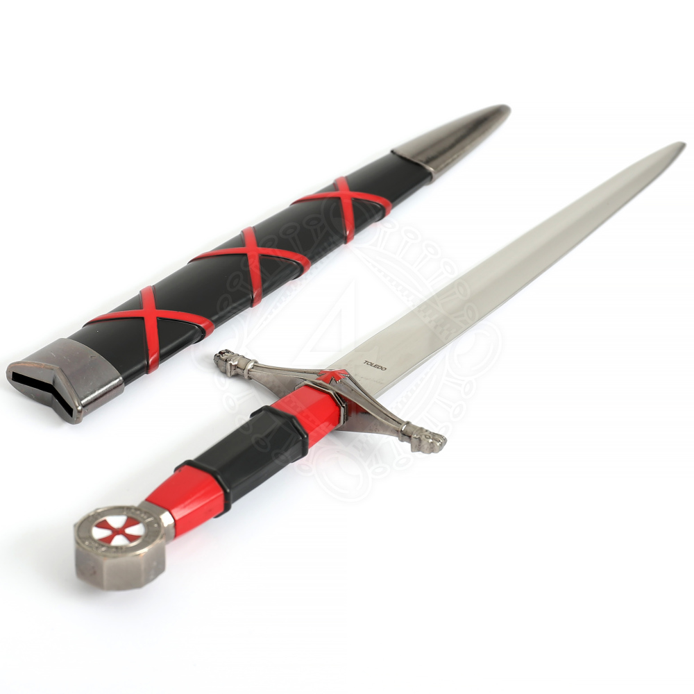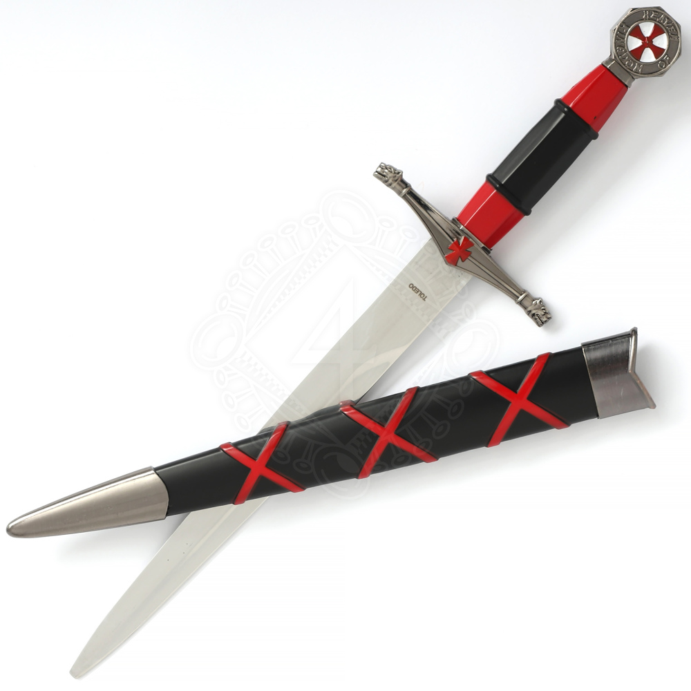 Schwarz-roter Templerdolch 37cm inkl. Scheide