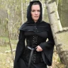 Die Samt-Corsage lässt sich gut zur Bluse und zum Rock kombinieren oder über ein lockeres Kleid. Wer nicht auf einen authentischen Look pocht, kann mit dieser Corsage sein Kostüm für eine Piratin, Schildmaid, Hexe oder Edeldame vervollständigen.