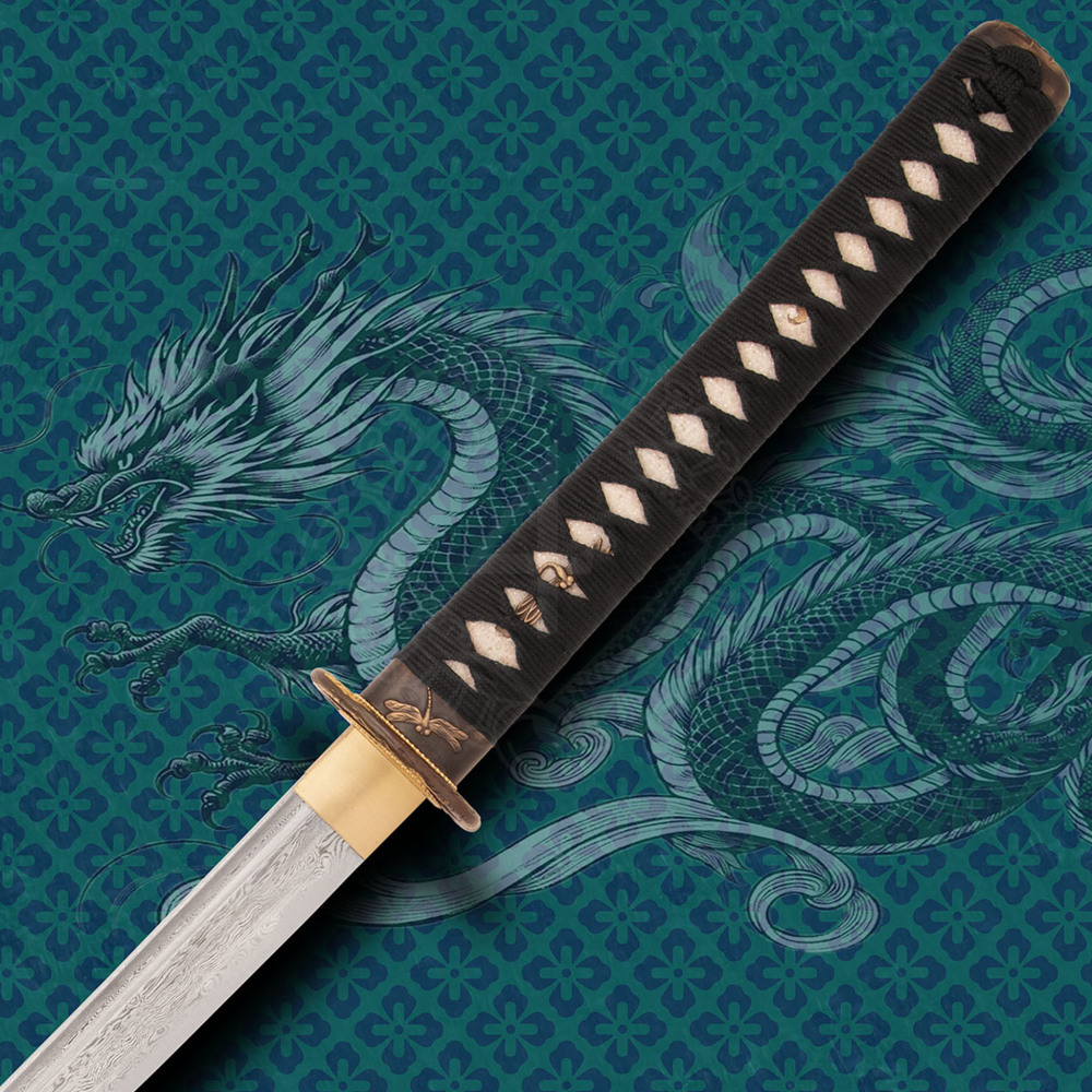 In Japan ist die Libelle (Tombo) ein verehrtes Symbol für Mut, Stärke, Glück und die Entschlossenheit, niemals aufzugeben. Dieses Katana Bushido Tonbo (MT-501876) spiegelt dieses "Siegerinsekt" in jedem Detail wider. Aber nicht nur sein schönes Design besticht. Die Klinge ist handgeschmiedet und **gefaltet (Damast)**, was ihr eine einzigartige Maserung (Hada) verleiht. Die gesamte Montierung (Koshirae) – vom Stichblatt (Tsuba) bis zur Kappe (Kashira) – ist aus **Messing mit Antik-Finish** gefertigt und trägt Libellenmotive. Der Griff ist mit **echter Rochenhaut** überzogen und traditionell umwickelt. Dieses Schwert ist jedoch hauptsächlich für dekorative Zwecke oder das Üben von Formen (Kata) gedacht. Es hat einen **simulierten Hamon** und eine weichere, zähe Klinge (ca. 40-45 HRC), die nicht für den Kontaktschwertkampf oder Schnitttests ausgelegt ist. Es ist das perfekte Stück für Sammler, die Schönheit und Symbolik suchen. Weitere Produktinformationen ...