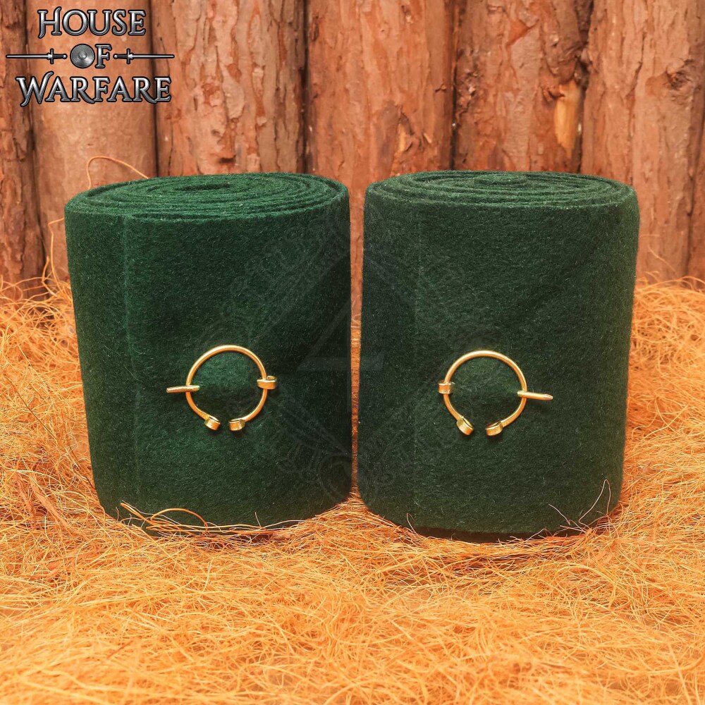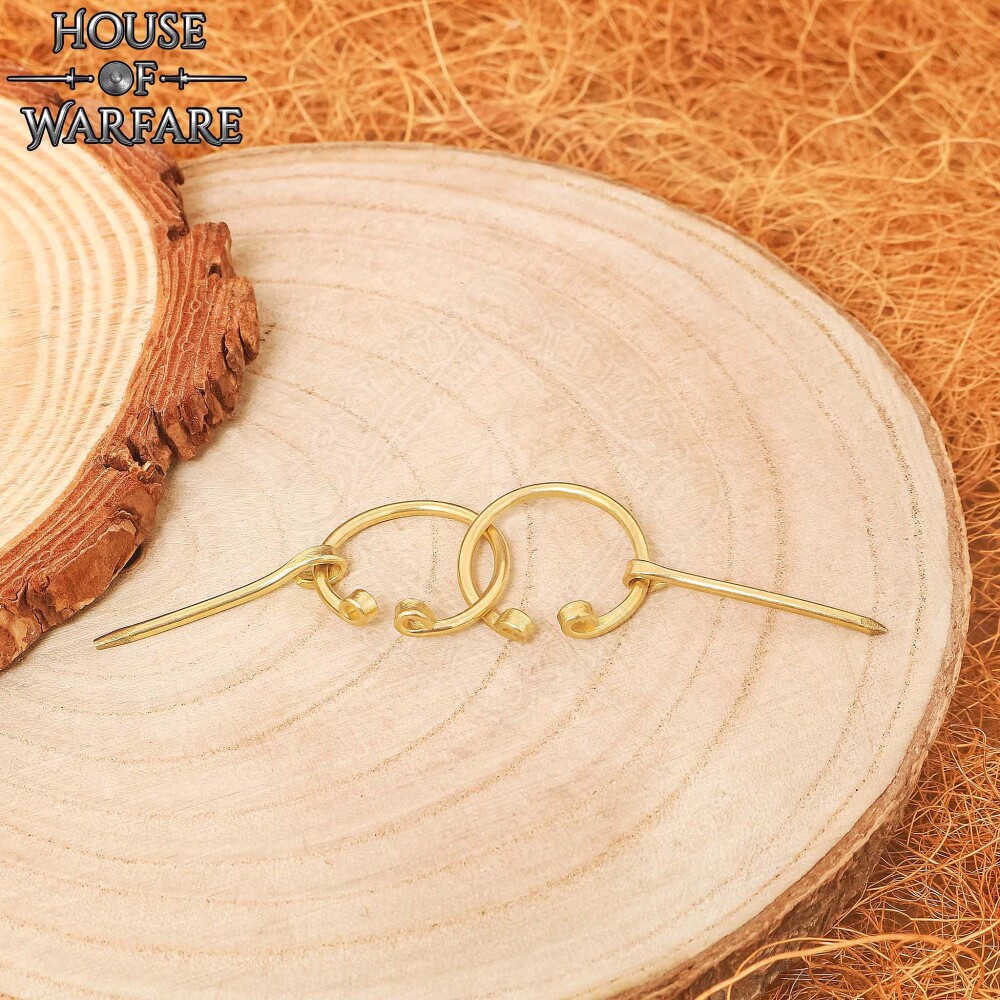 Suchst du nach dem perfekten und funktionalen Detail für deine Wikinger-Wadenwickel? Dieses Set aus zwei kleinen Ringfibeln ist genau das, was deinem Kostüm gefehlt hat. Sie sind aus massivem Messing gefertigt und ihr Design ist originalgetreu historischen Funden nachempfunden. Ihre einfache, aber elegante Form mit gerollten Enden ist typisch für das Frühmittelalter, insbesondere für Wikinger und Sachsen. Sie sind nicht nur schön, sondern vor allem praktisch: Sie dienen zur sicheren Befestigung deiner Wadenwickel (Winingas) oder Armwickel, damit diese den ganzen Tag beim LARP, in der Schlacht oder auf dem historischen Fest an Ort und Stelle bleiben. Dank ihrer idealen Größe und der scharfen Nadel dringen sie leicht durch den Stoff, ohne ihn zu beschädigen. Weitere Produktinformationen ...